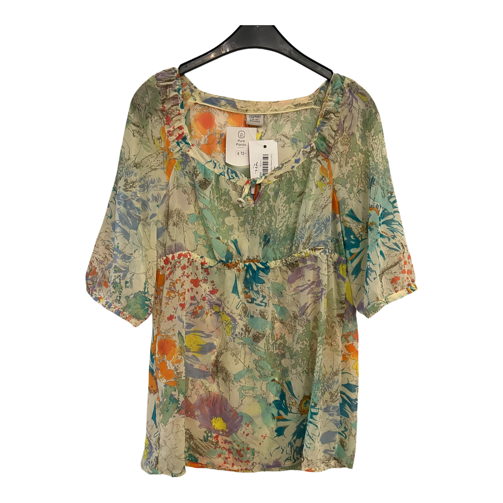 Die ESPRIT Bluse in Größe 40 ist ein lebendiges, transparentes Oberteil mit buntem Muster, das ideal für einen frischen und modischen Look ist. Die Bluse ist neu und verleiht durch ihre leichte Transparenz einen Hauch von Eleganz, während das bunte Design für Fröhlichkeit und Stil sorgt. Sie kann mit einem schlichten Top darunter kombiniert werden, um die Transparenz auszugleichen, und passt perfekt zu Jeans, Stoffhosen oder Röcken. Diese Bluse ist ideal für sowohl lässige als auch schicke Outfits und bringt Farbe in den Kleiderschrank!