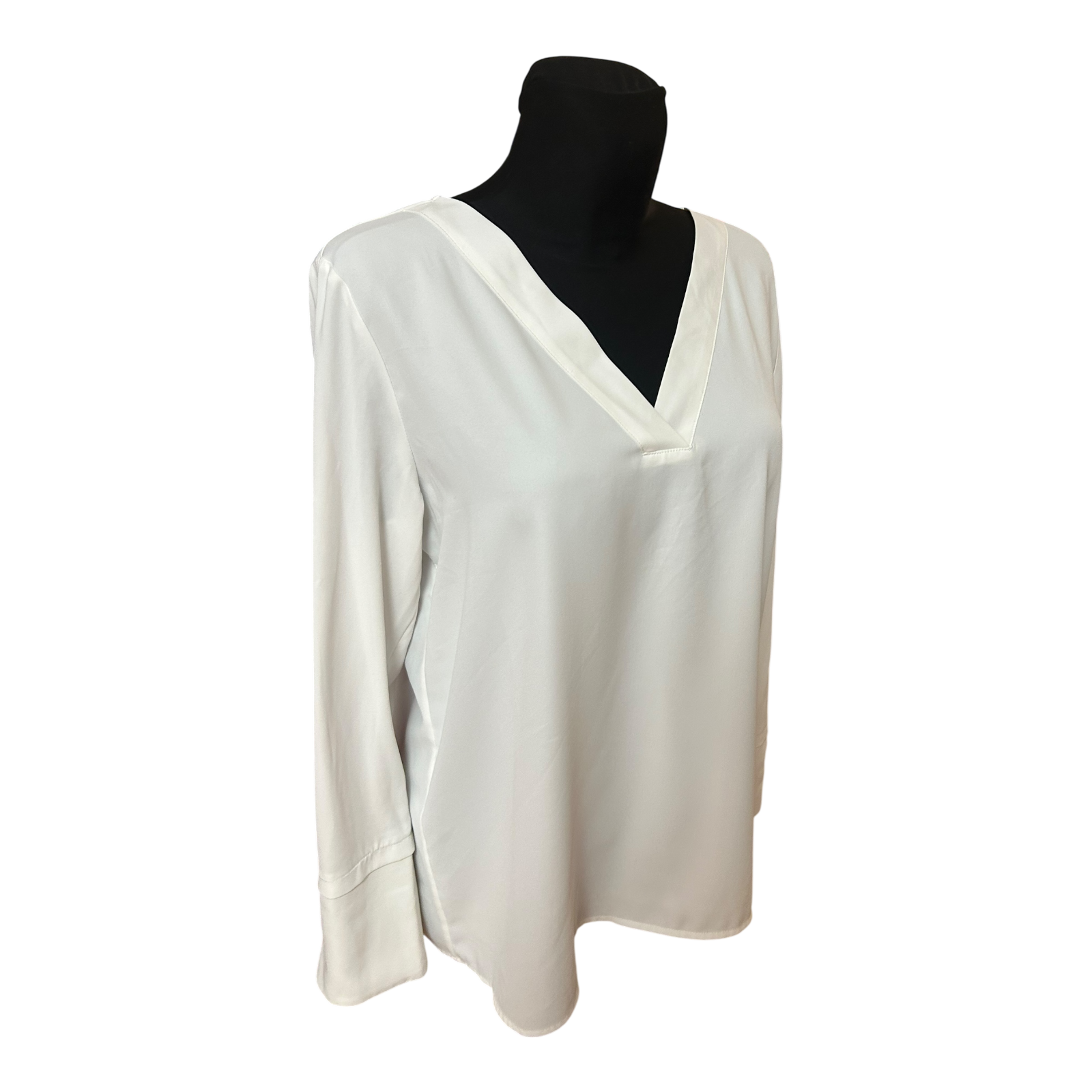 Esprit Damen Bluse Gr 38 Weiß V-Ausschnitt Elegant Langarm Fließend