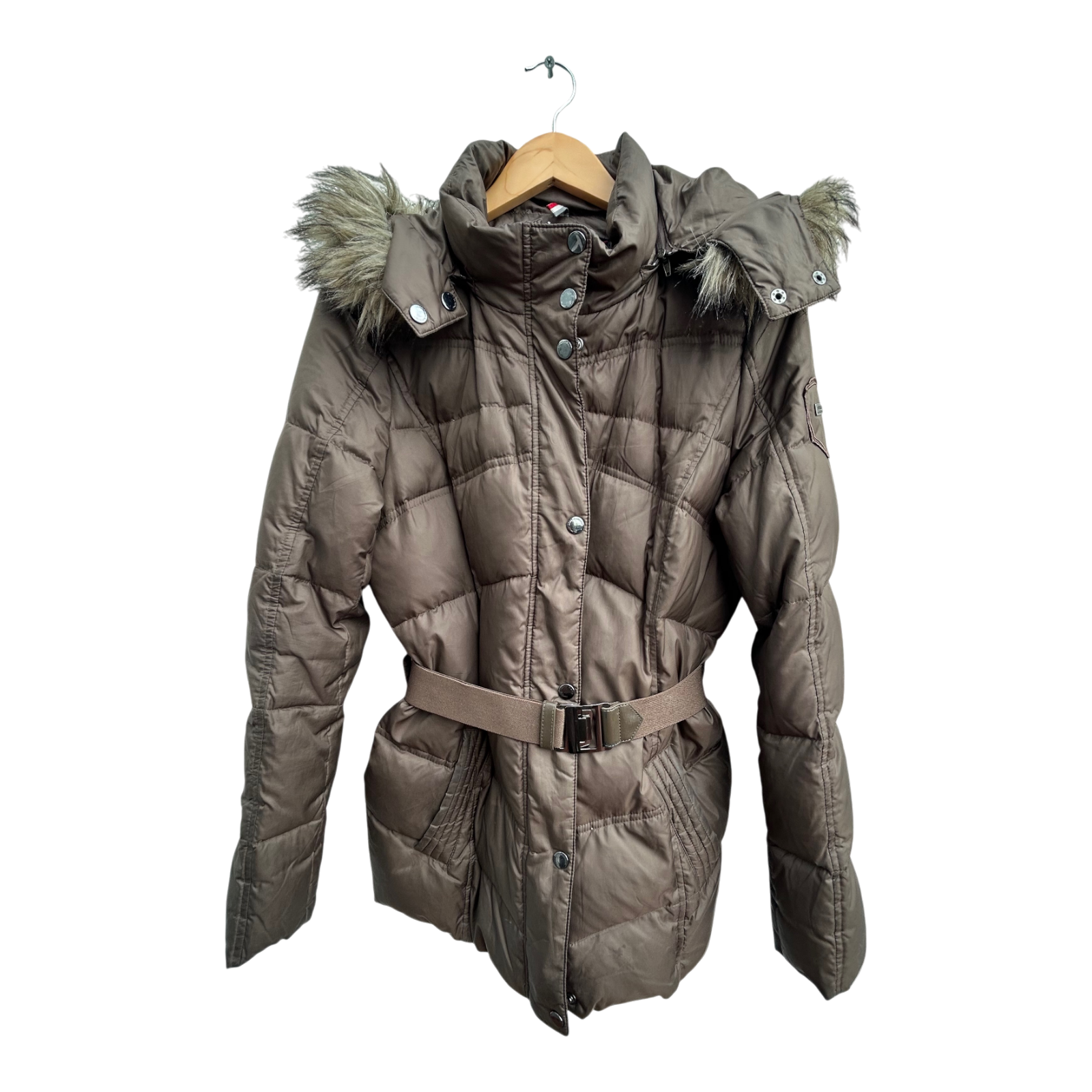 Esprit Daunenjacke Damen Gr 38 Braun Gefüttert Kapuze Fellkragen Tailliert Elegant Warm