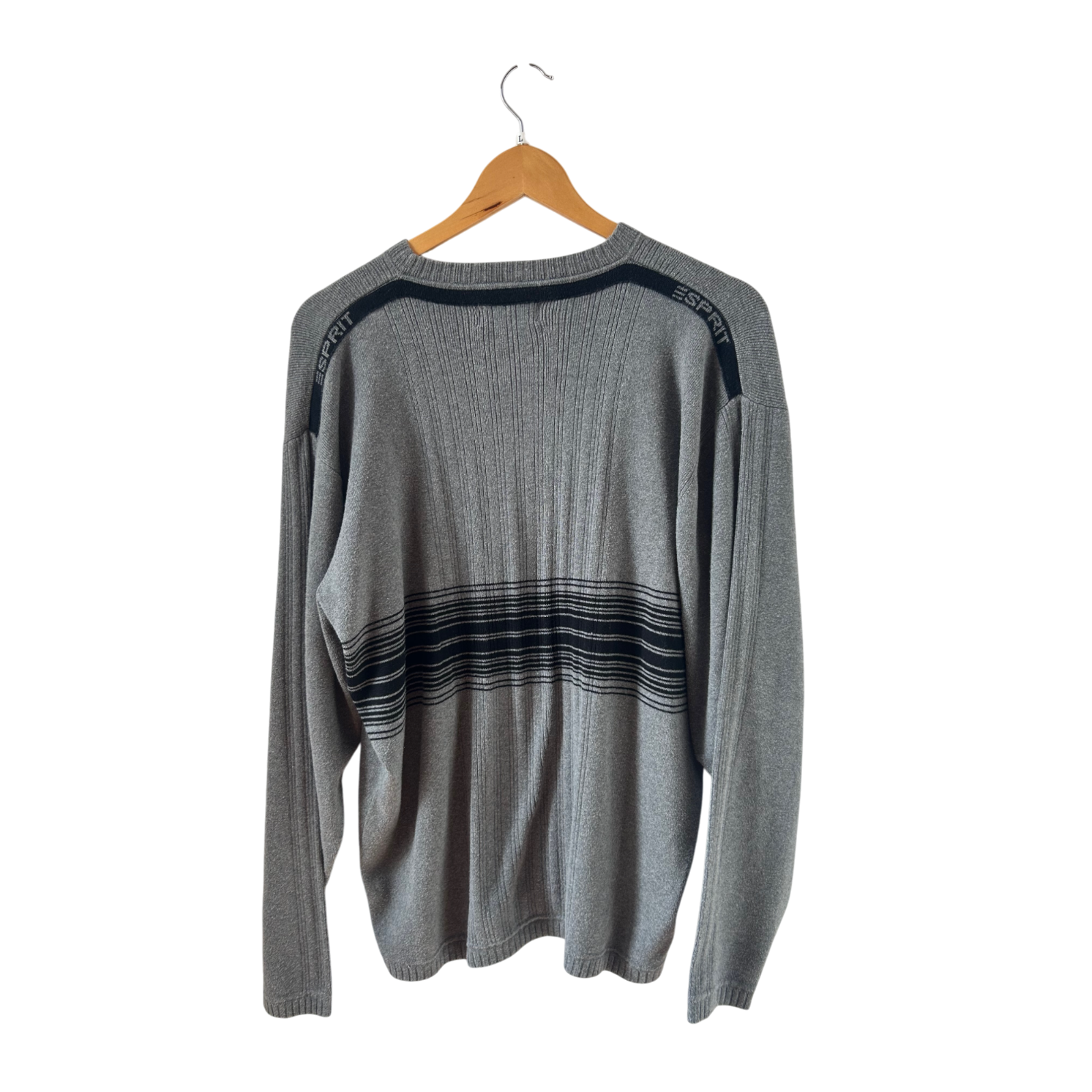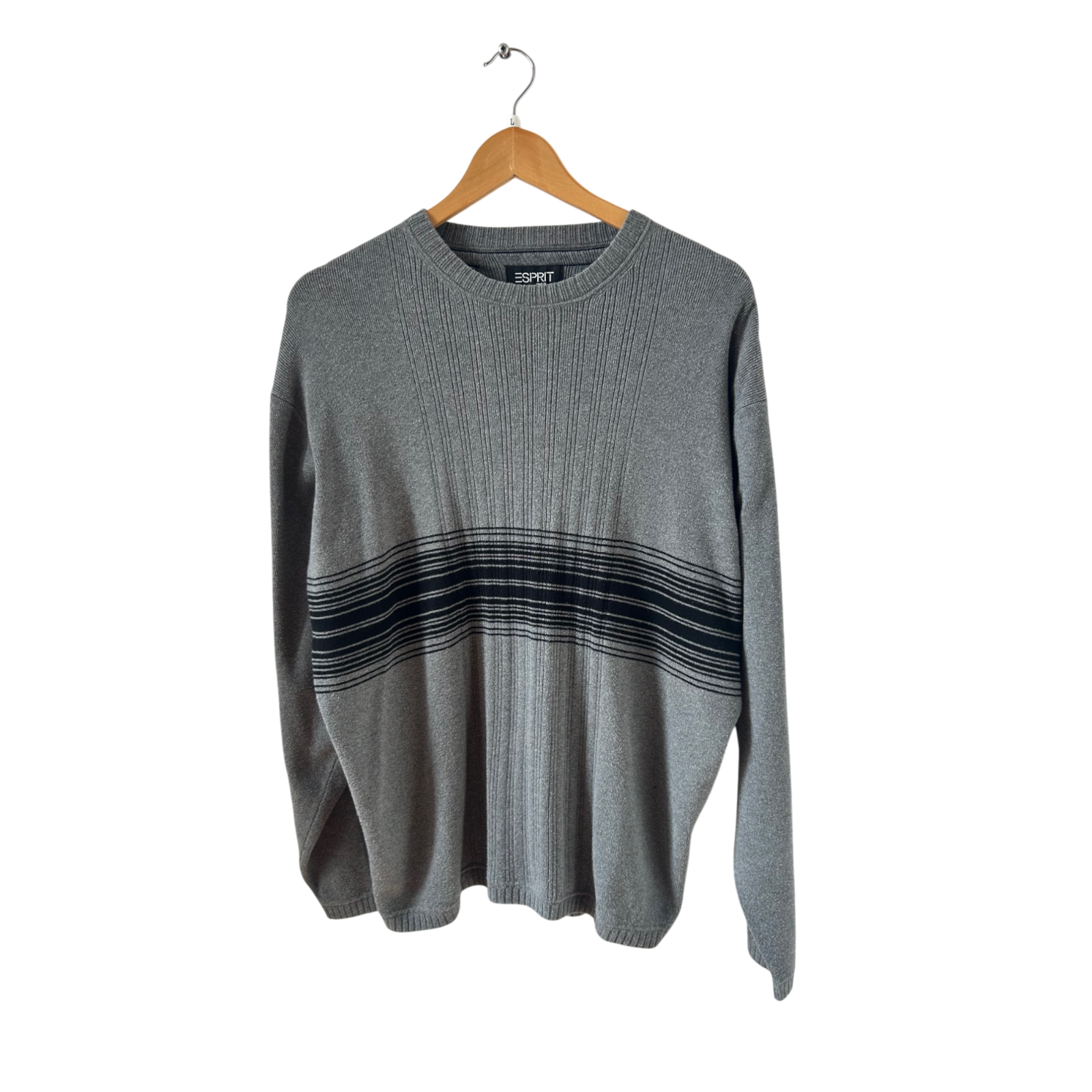 Esprit Pullover Herren L Grau Baumwolle Strick Sweater Classic Casual Vintage Look