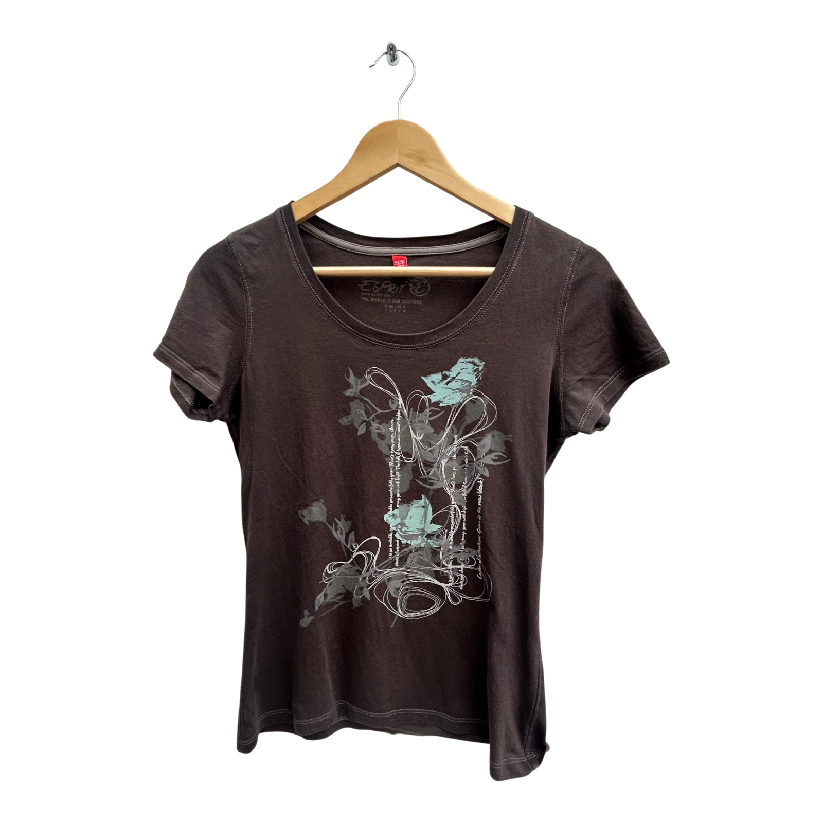 Esprit T Shirt Damen Gr S Braun Rundhals Baumwolle Kurzarm Blumenprint Casual