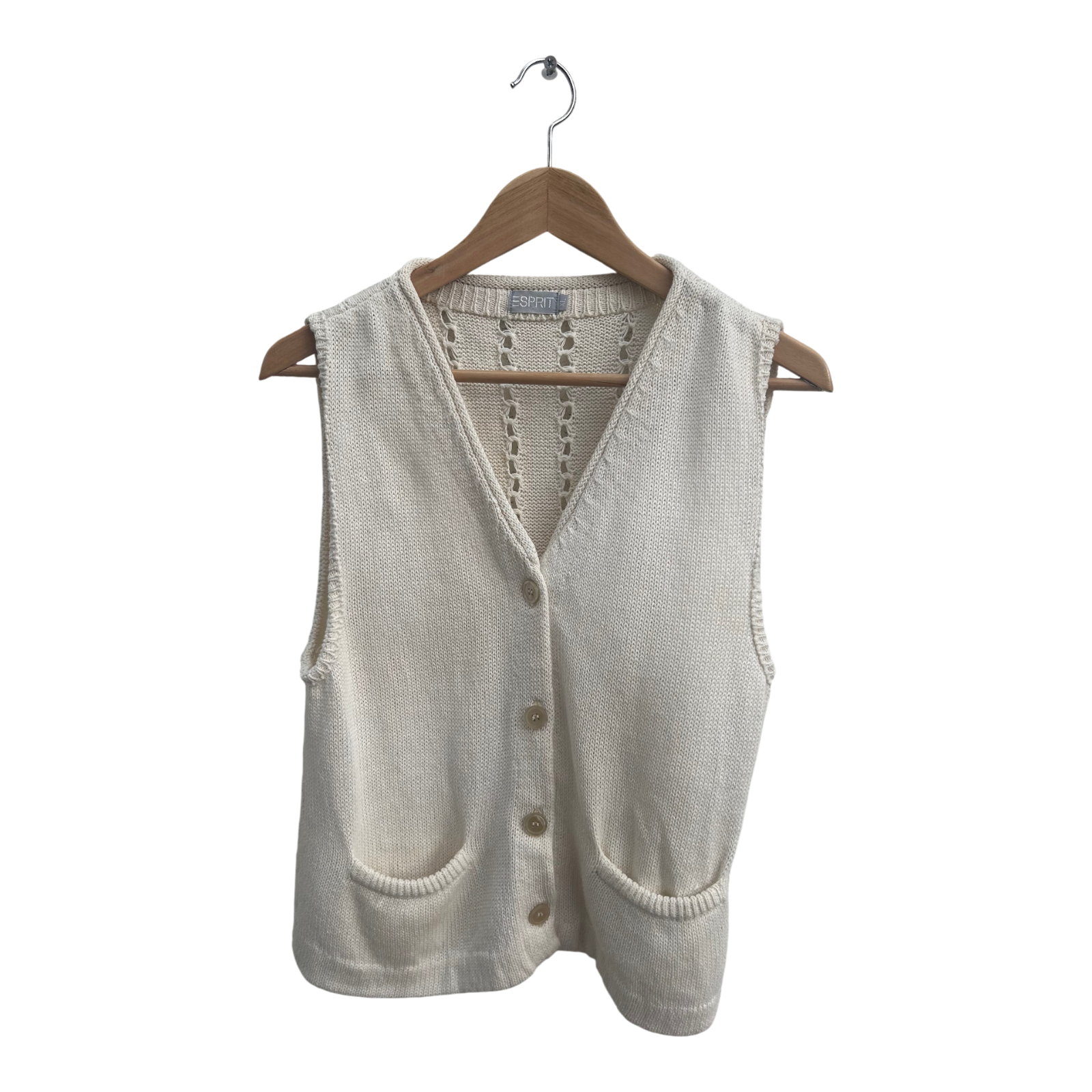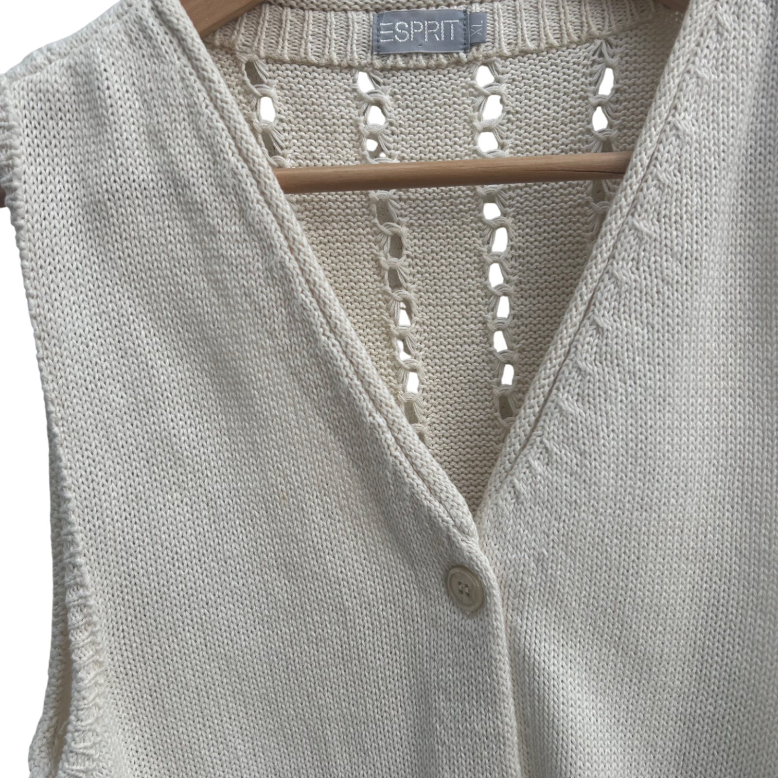 Esprit Weste Damen Gr XL Weiß Strick Baumwolle Ärmellos Knöpfe Vintage Sommer