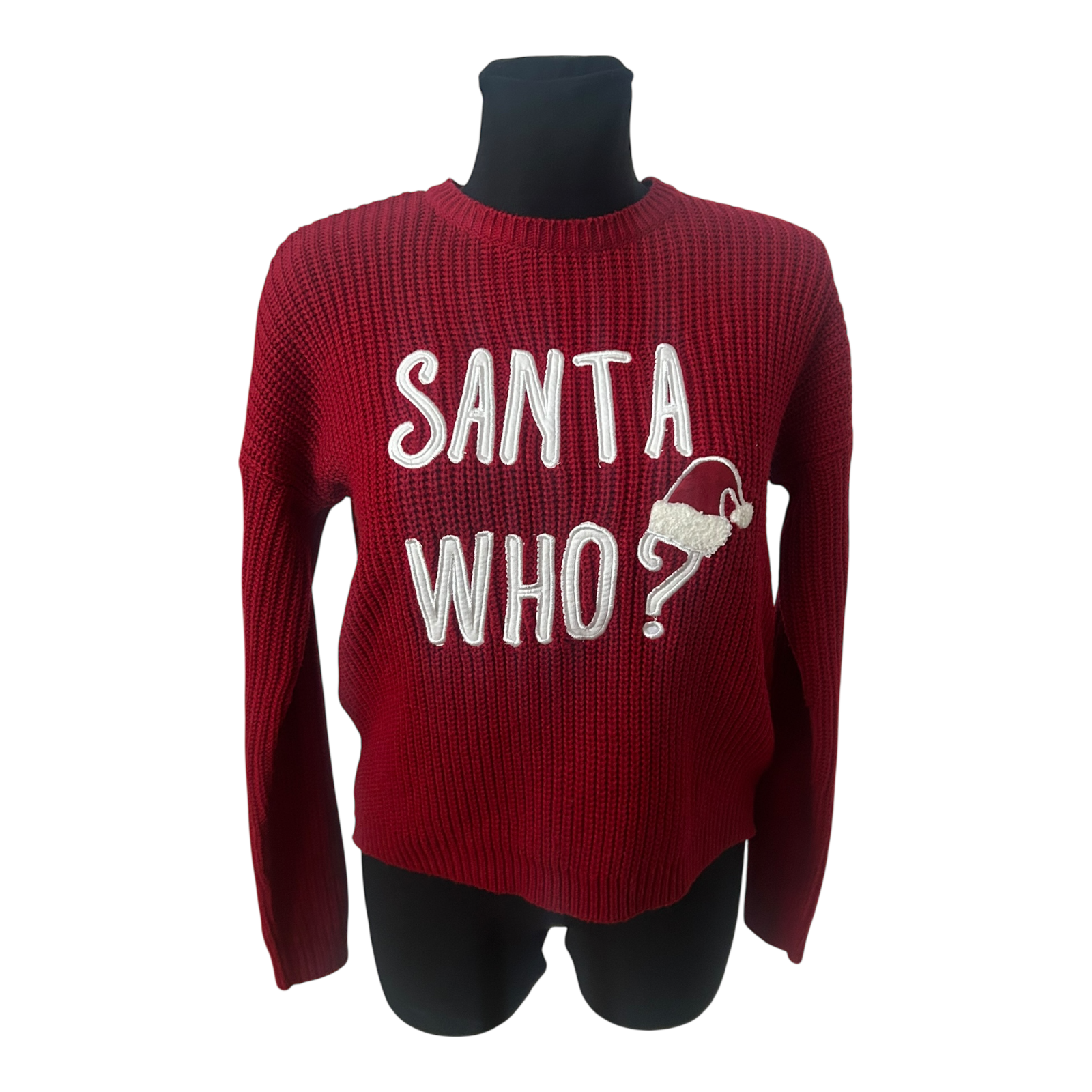 Dieser rote Strickpullover von Fishbone in Größe XS ist ein echter Hingucker für die Winter- und Weihnachtszeit 🎄 Der auffällige „Santa Who“ Schriftzug mit appliziertem Weihnachtsmotiv macht ihn perfekt für Advent, Weihnachtsfeiern oder gemütliche Wintertage.