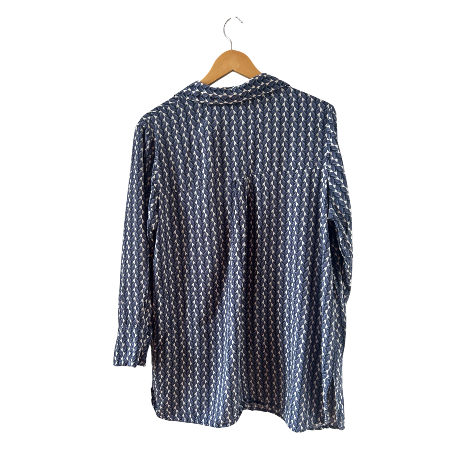 Gina Benotti Bluse Damen Gr L Blau Muster Langarm Viskose Freizeit Büro Modern