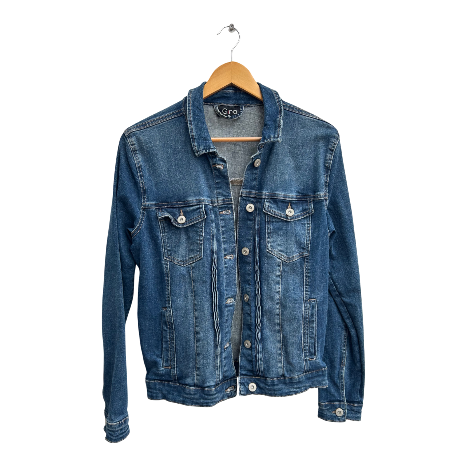Gina Jeansjacke Damen Gr 44 Blau Denim Stretch Übergangsjacke Freizeit Casual