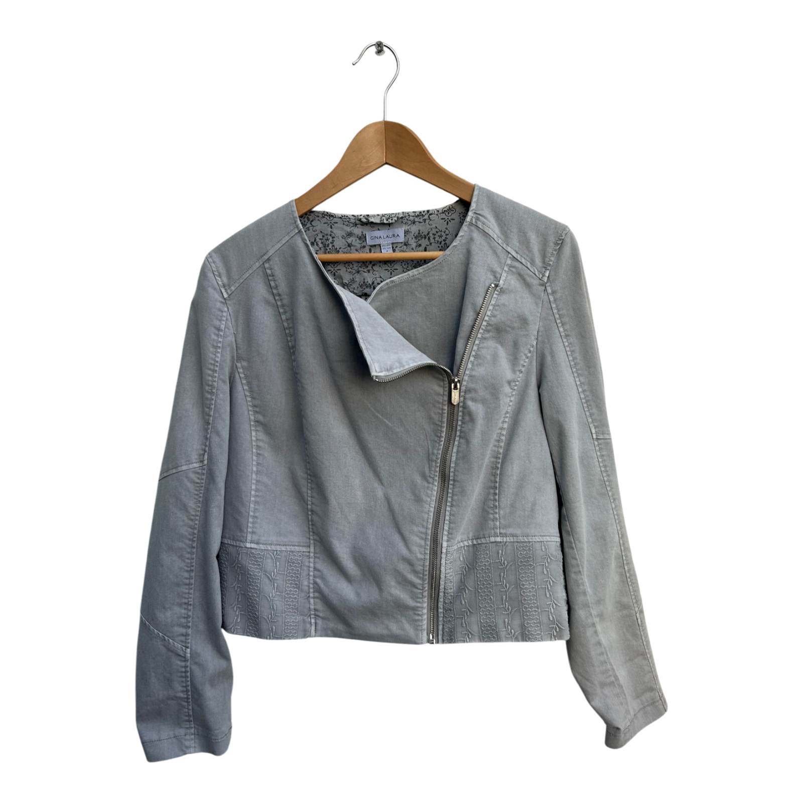 Gina Laura Damen Jacke Gr M Grau Baumwolle Polyester Elasthan Reißverschluss Chic