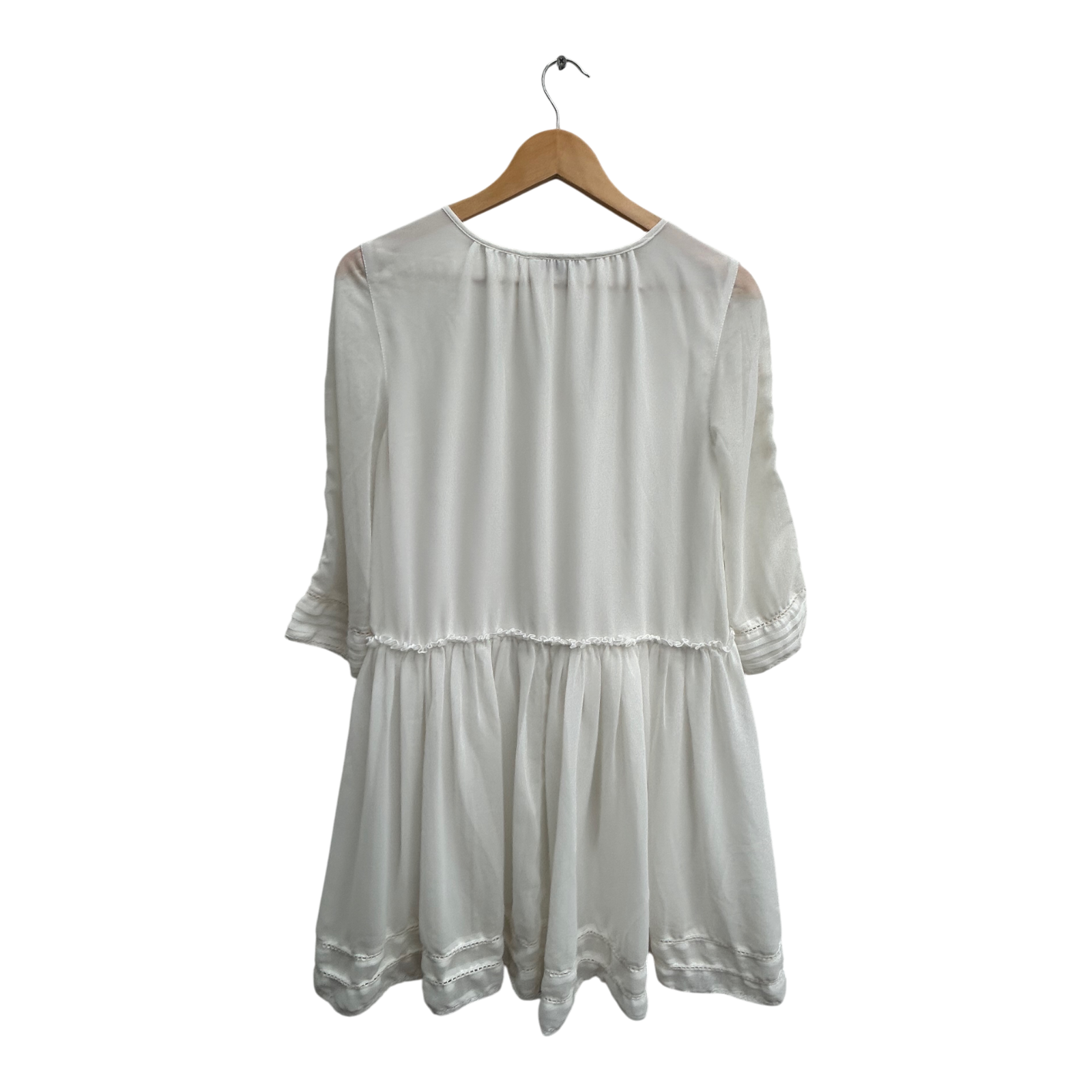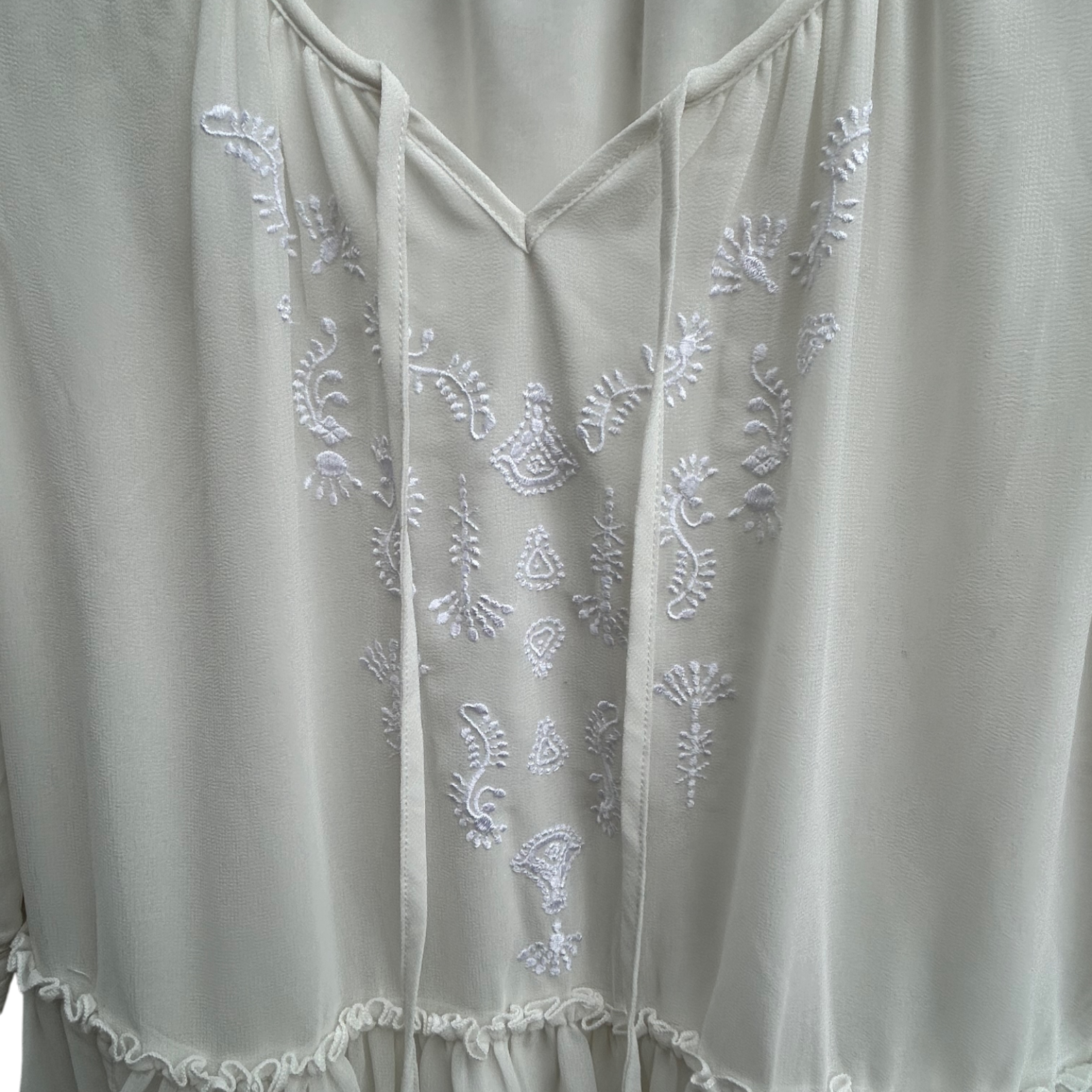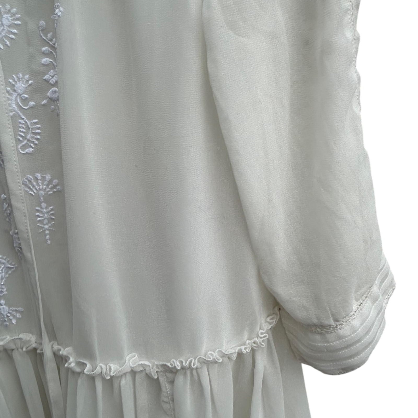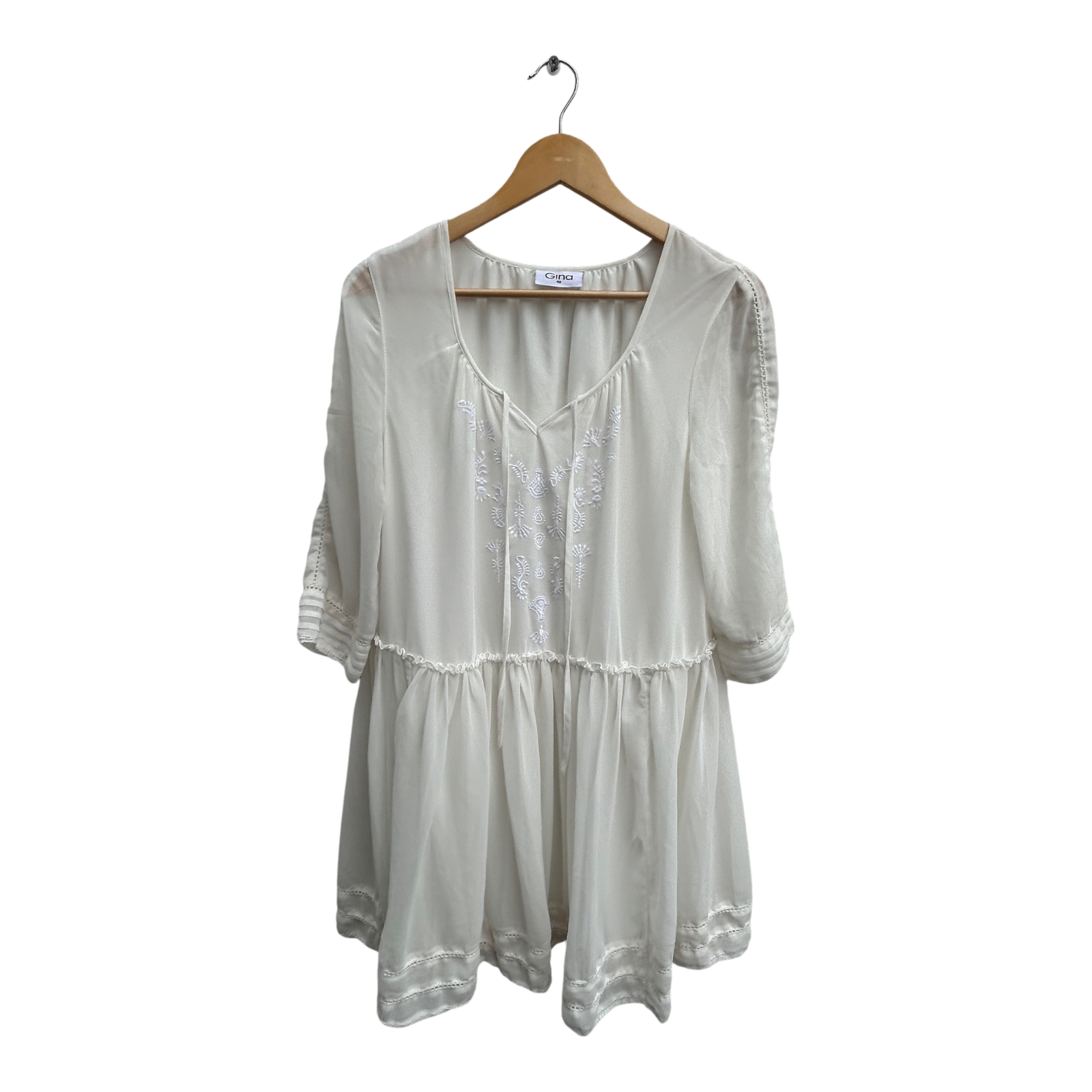 Gina Tunika Damen Gr 40 Creme Weiß Stickerei Boho Sommer Bluse Elegant Chiffon