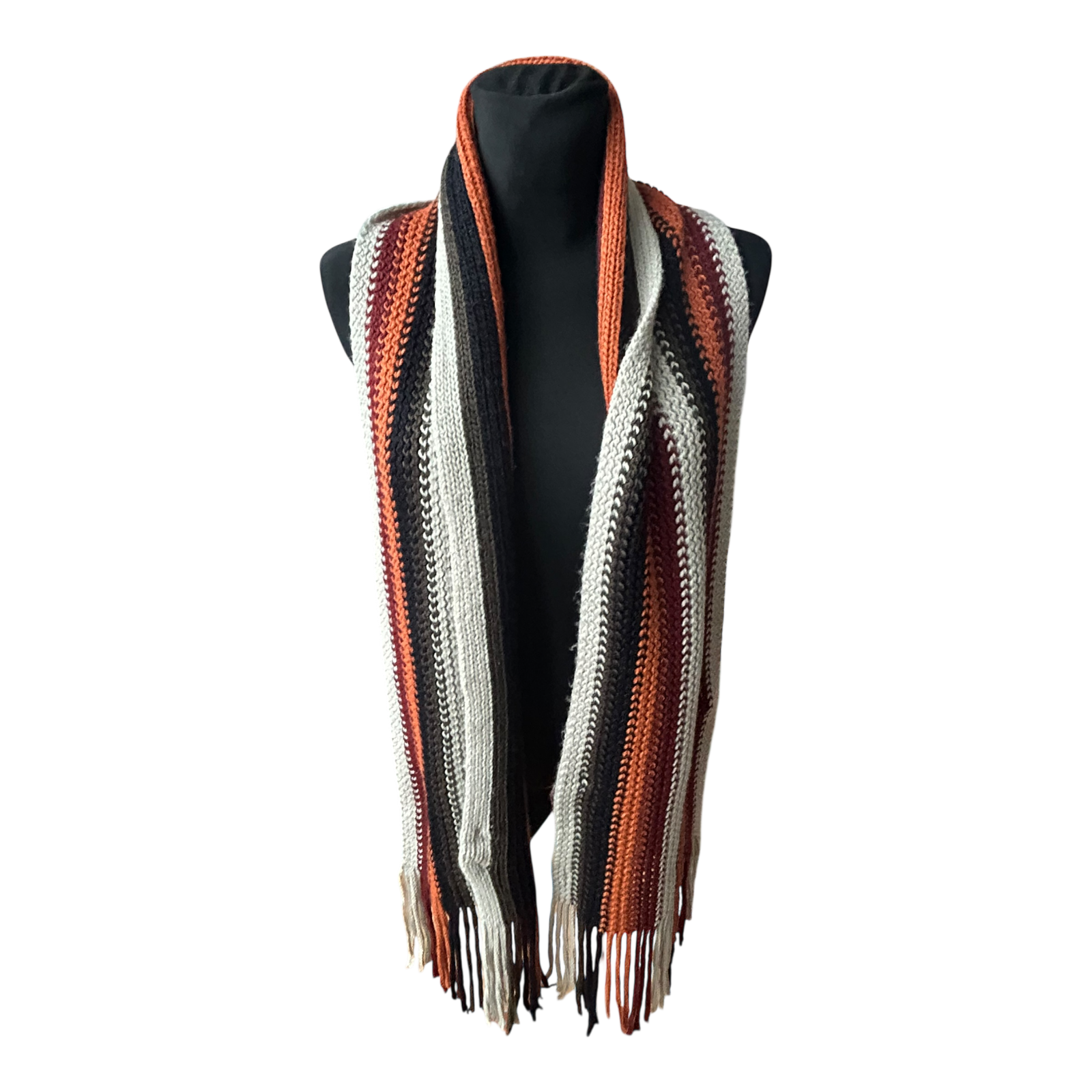 Großer Damen Schal gestrickt weich mit Fransen Streifenmuster Herbst Winter