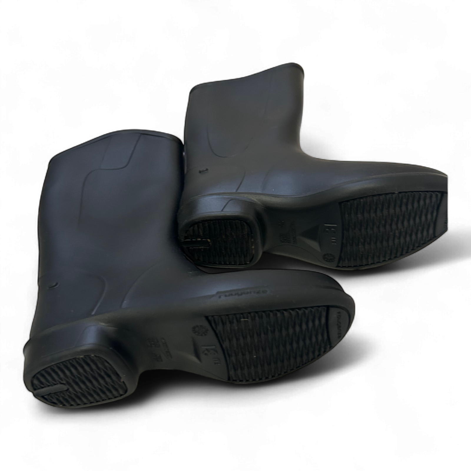 Diese hochwertigen schwarzen Gummistiefel in Größe 31 überzeugen mit einem klaren Design und robuster Ausführung 🌧️. Mit einer Schafthöhe von 27 cm und einer Schaftweite von 13 cm eignen sie sich hervorragend für Kinder oder zierliche Damenbeine 👢. Der knöchelnahe Sitz und die elegante Linienführung erinnern an klassische Reitstiefel 🐎. Dank des pflegeleichten, wasserdichten Materials und der rutschfesten Sohle bieten sie sicheren Halt bei Wind und Wetter 🌦️. Die Schuhe sind in einem exzellenten Zustand – kaum getragen, ohne Mängel ✅. Vielseitig einsetzbar – für Schule, Reitstall, Garten oder Freizeit.