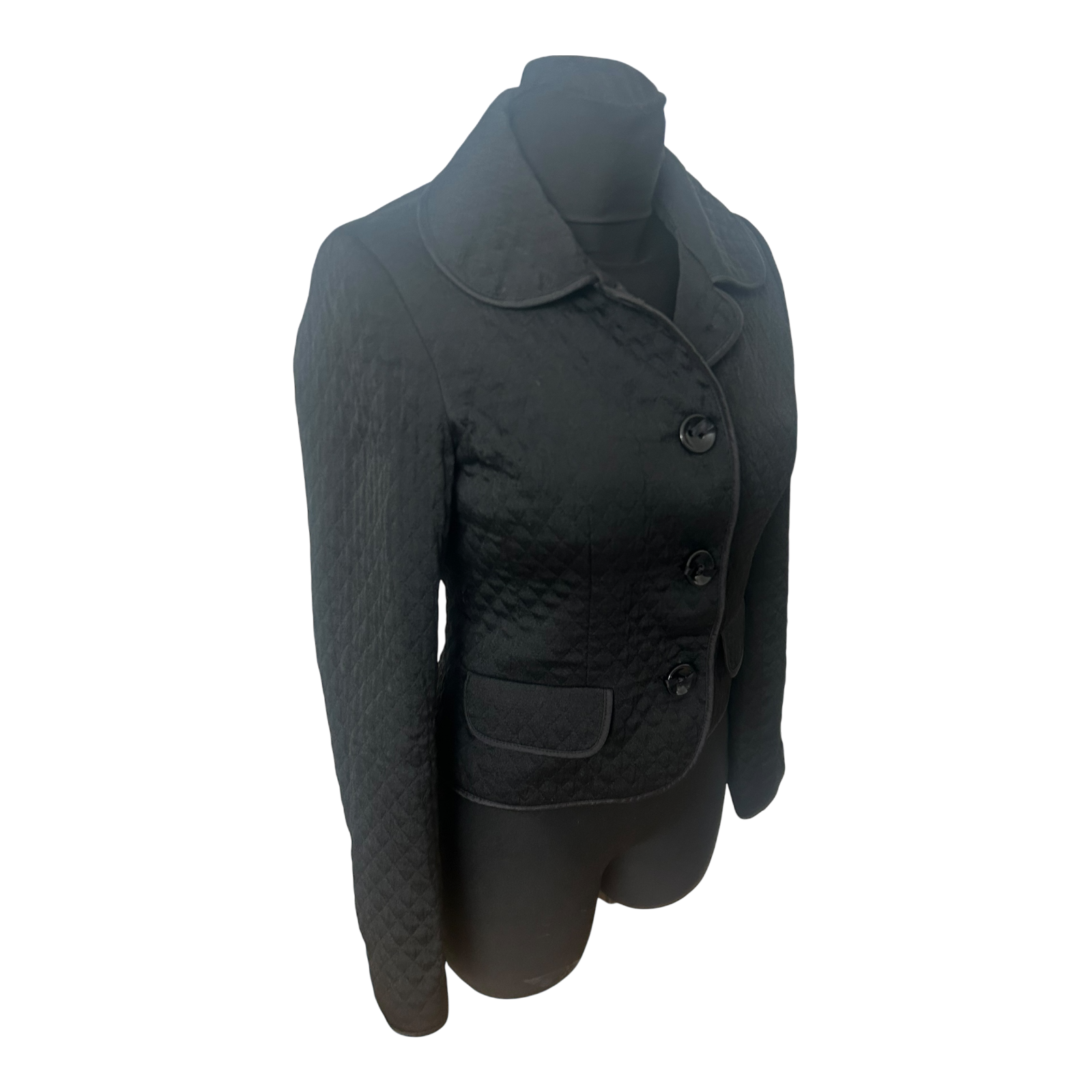 H&M Blazer Damen Gr 34 Schwarz Steppoptik Kurzblazer Übergang Elegant
