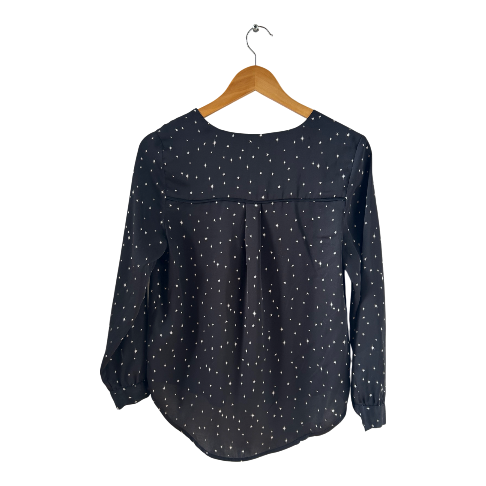 H&M Bluse 32 schwarz Sterne Langarm elegant leicht V-Ausschnitt Büro Top Damen