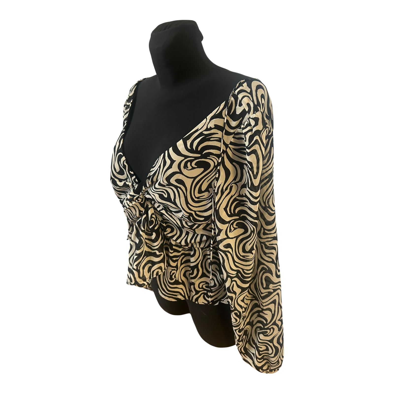 Wunderschöne Bluse von H&M in Größe M mit modernem beige-schwarzem Muster und besonders femininem Schnitt ✨ Die Bluse besteht aus 100% Polyester und fällt weich sowie angenehm leicht.