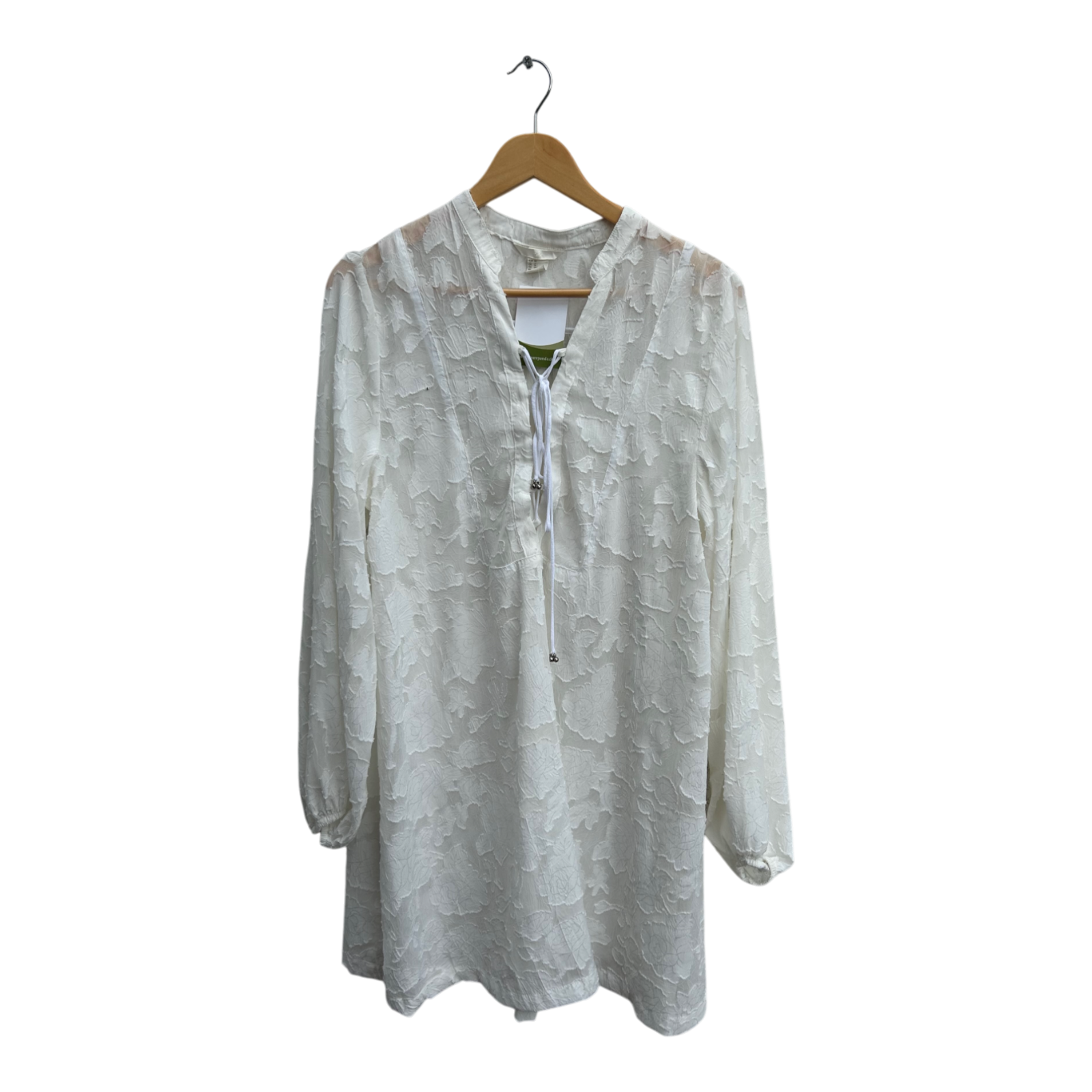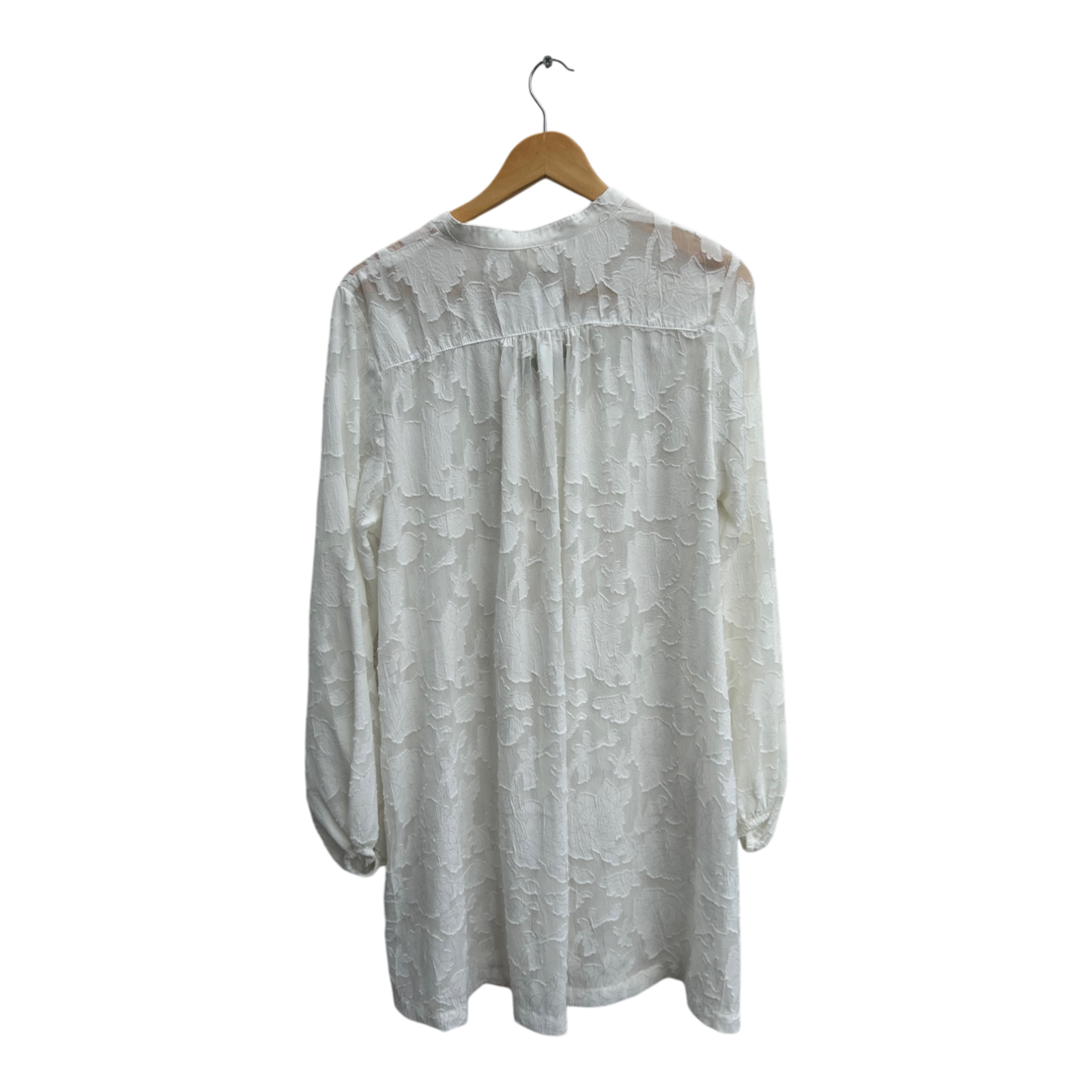 H&M Bluse Damen Tunika Gr 46 Weiß Transparent Struktur Langarm V-Ausschnitt Elegant