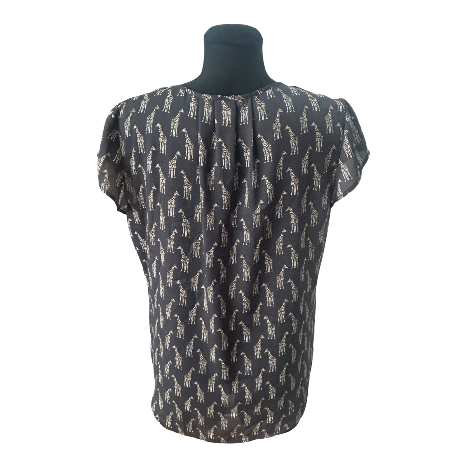 H&M Conscious Damen Bluse Kurzarm Giraffen Muster V Ausschnitt Größe 38