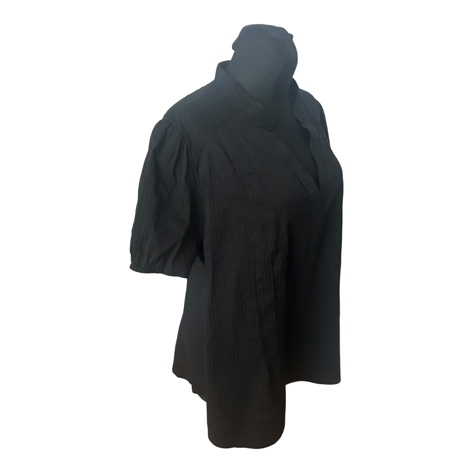H&M Damen Bluse Gr 54 Schwarz Casual 3/4 Arm Strukturstoff Viskose Baumwolle Mix