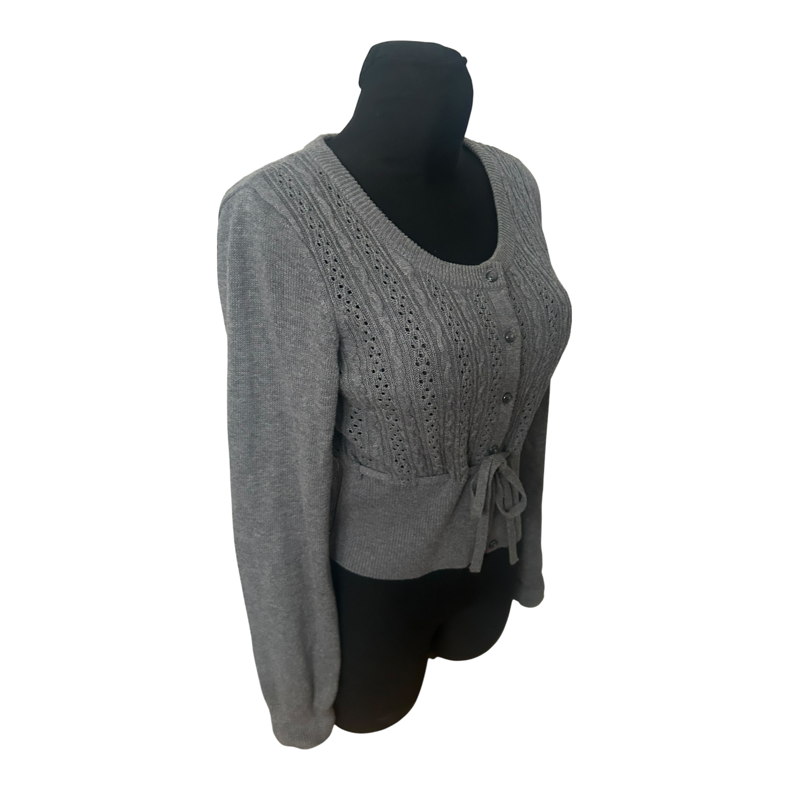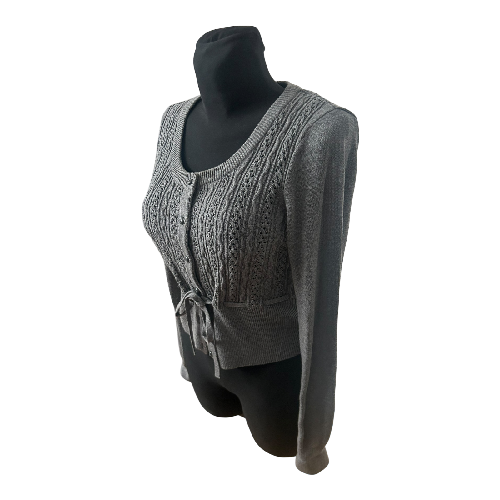 H&M Damen Strickjacke Gr M Grau Zopfmuster Tailliert Baumwollmix
