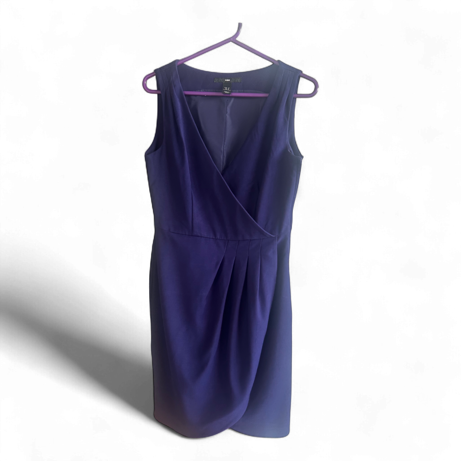 H&M Kleid Damen Dress Damenkleid Gr. 36 Violett Etui Ärmellos Wickeloptik Elegant