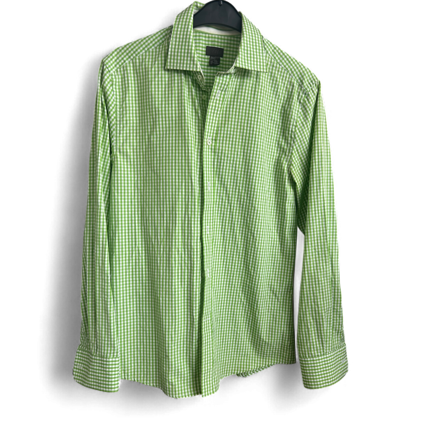 Leicht tailliertes Herrenhemd von H&M in frischem Grün mit feinem Vichy-Karo. 100 % Baumwolle, angenehm weich und atmungsaktiv. Größe M, Brustweite ca. 54 cm, Ärmellänge ca. 69 cm, Länge ca. 74 cm. Guter Zustand mit leichten Gebrauchsspuren – ideal für Alltag, Freizeit oder Büro 🍃