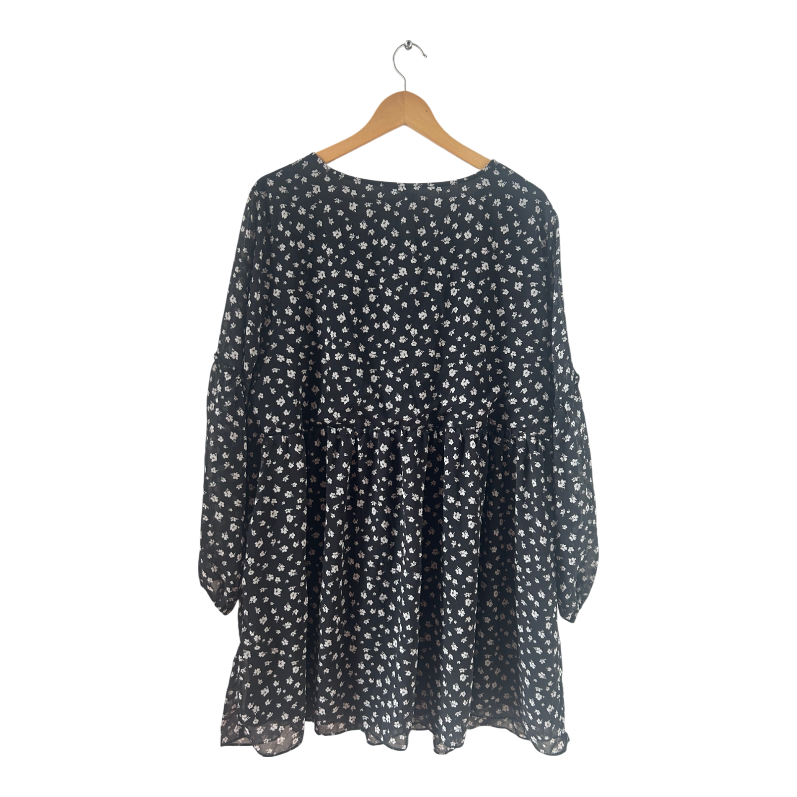 H&M Kleid Damen Dress Damenkleid Gr. 2XL Schwarz Weiß Blumen Gefüttert Boho