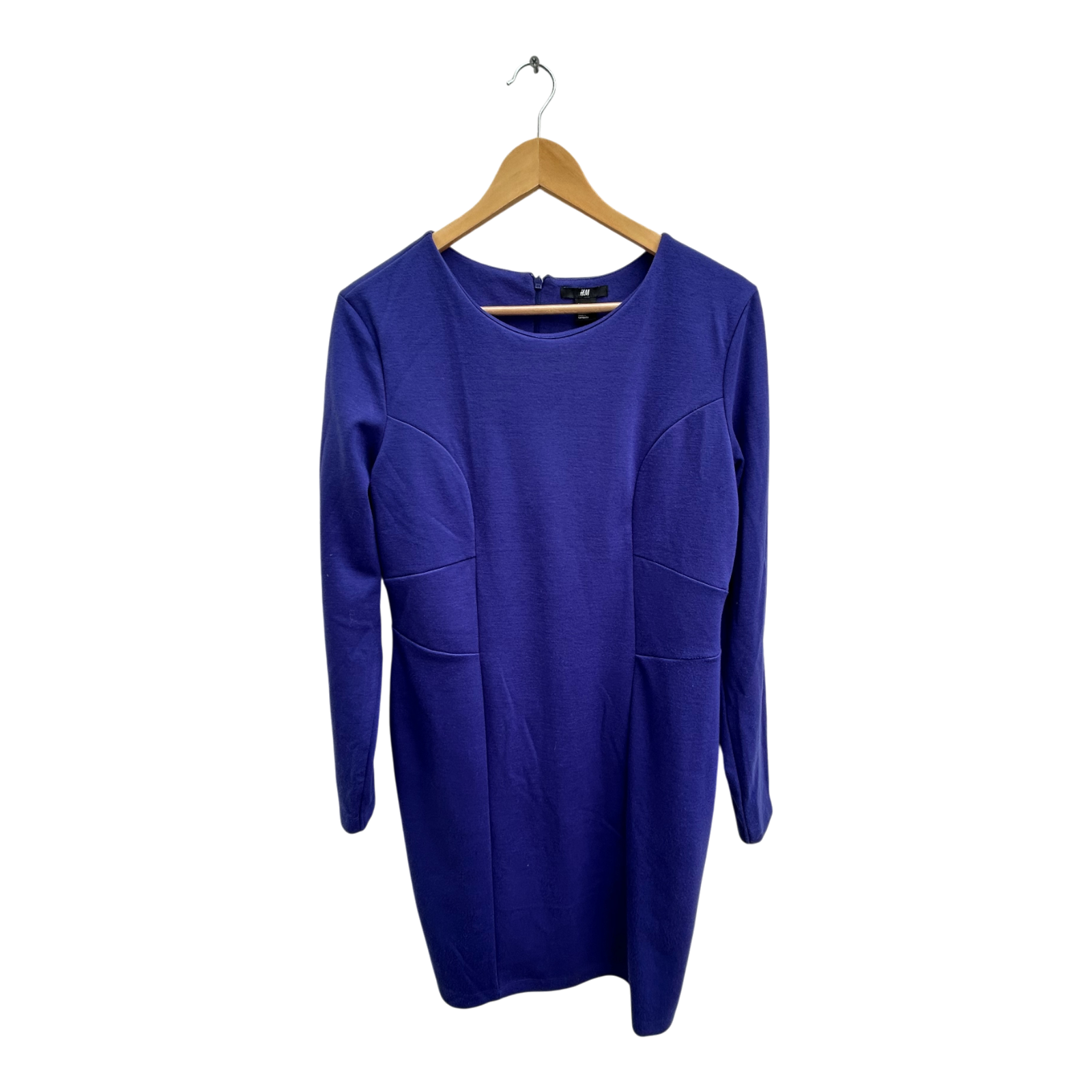 H&M Kleid Damen Gr L Royalblau Elegant Stretch Langarm Figurbetont Business
