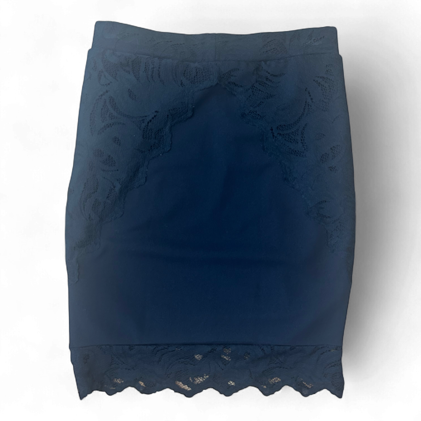 H&M Rock Gr 40 Schwarz Spitze Elegant Stretch Futter Knielang Top Zustand
