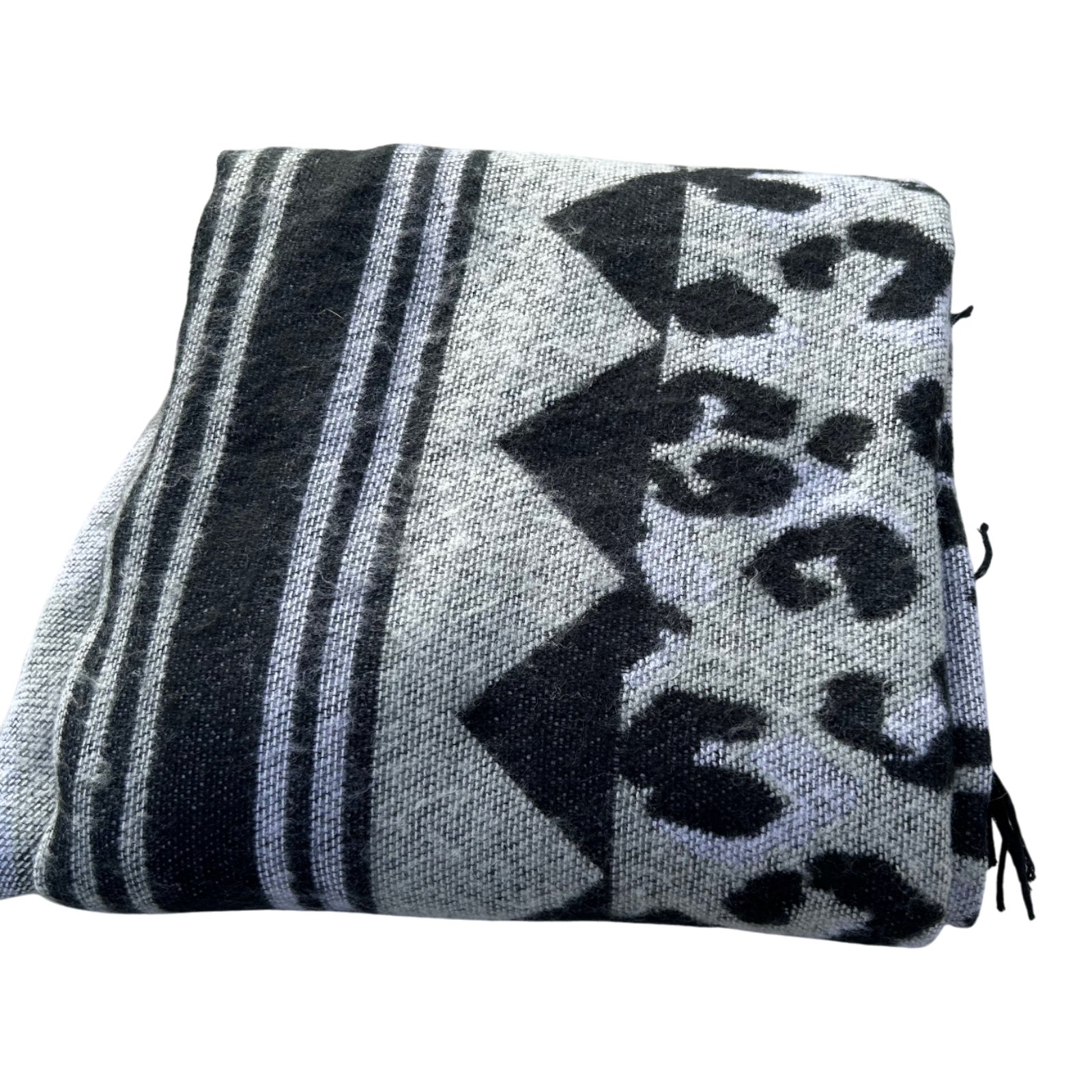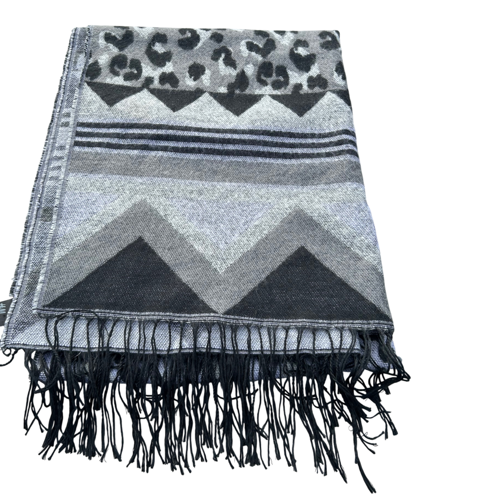 H&M Schal Tuch Grau Schwarz Muster weich Fransen Winter Accessoire warm modern