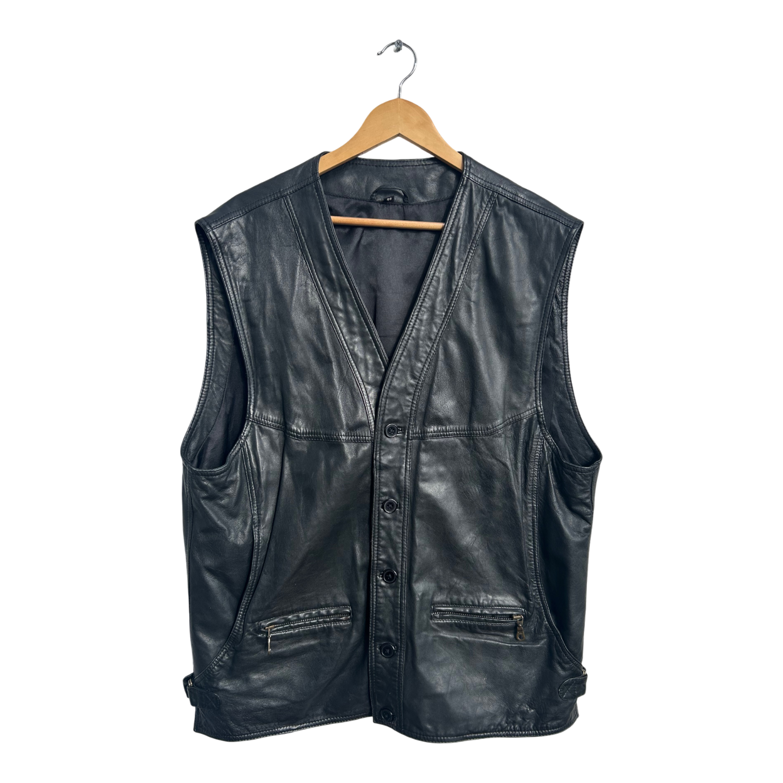 Herren Lederweste Schwarz Gr 56 Echtleder Weich Futter Poly Klassisch Vintage
