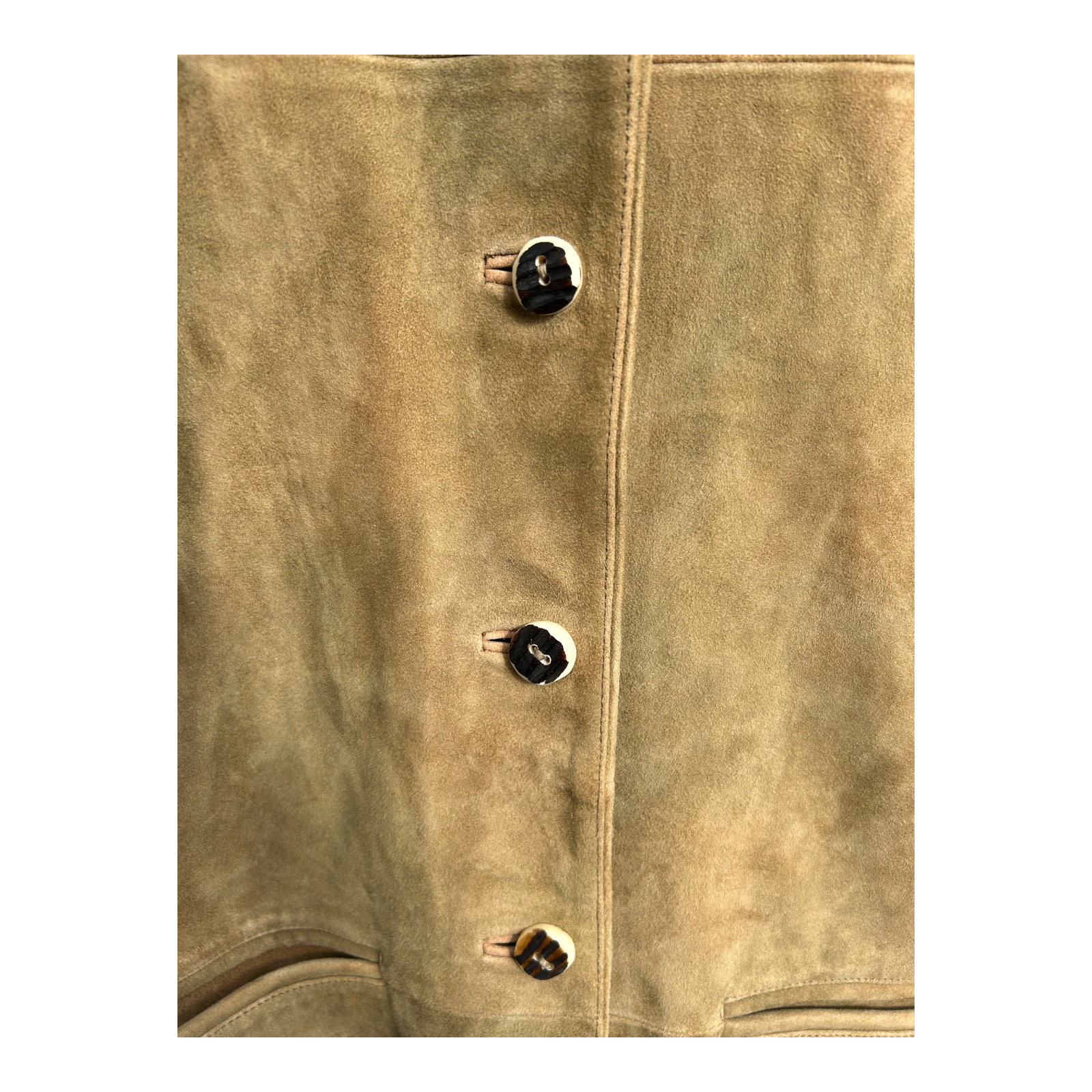 Hochwertige Trachtenweste von Hochstein, gefertigt aus feinem Wildleder in einem natürlichen hellbraunen Farbton.