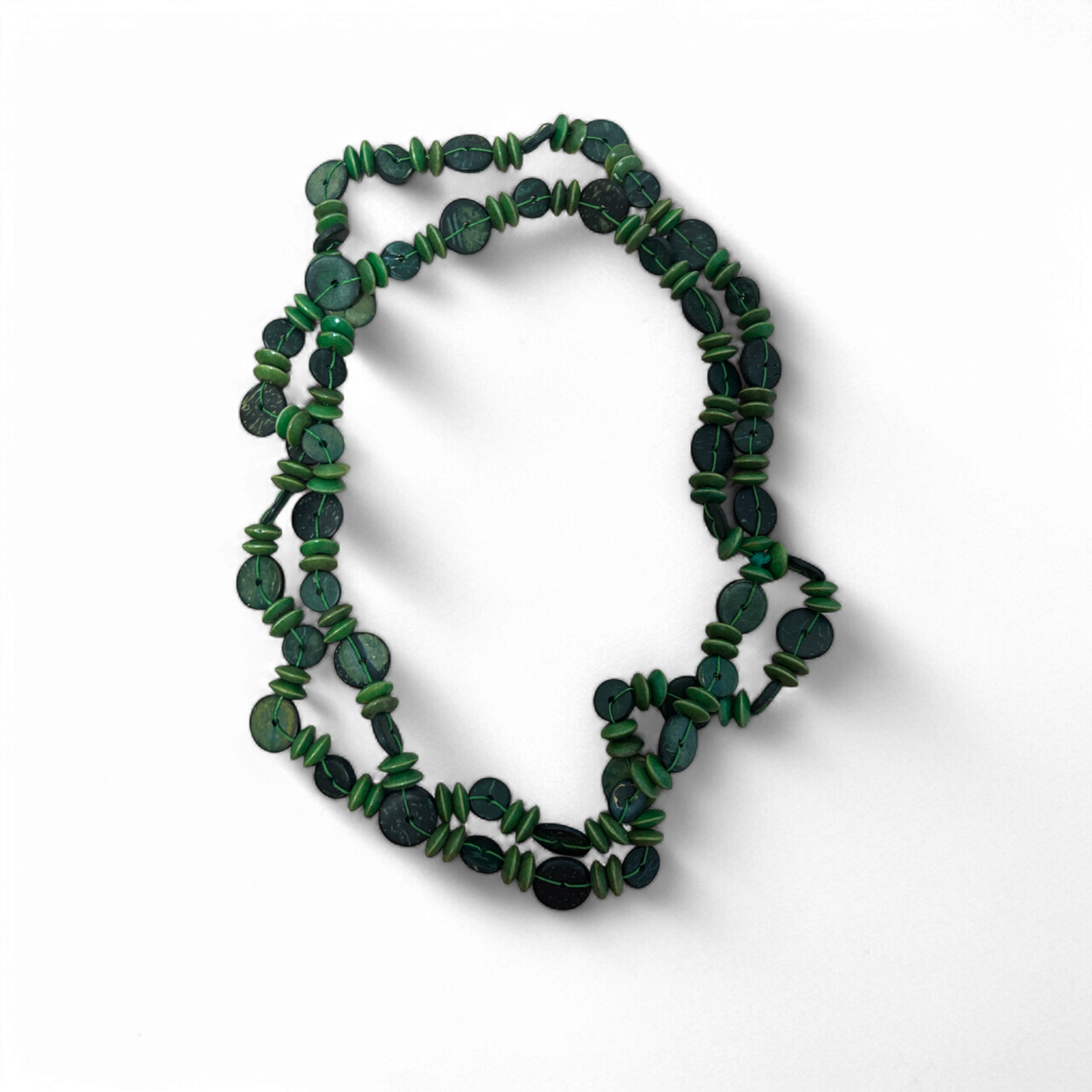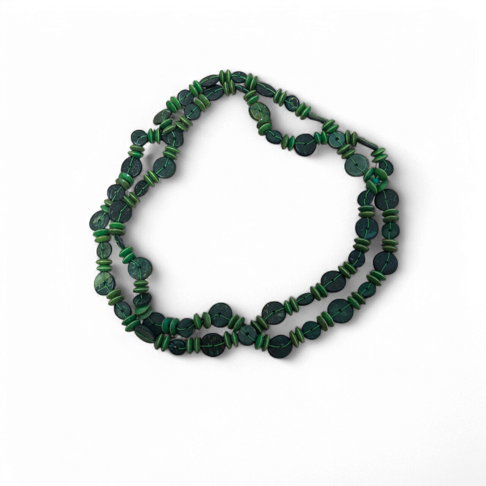 Diese zweireihige grüne Holzkette mit einem Umfang von ca. 76 cm verleiht jedem Outfit einen natürlichen, sommerlichen Look. Die runden Holzperlen in verschiedenen Grüntönen wirken harmonisch und leicht. Durch das zweireihige Design erhält die Kette einen besonders dekorativen, lebendigen Charakter. Perfekt kombinierbar zu Sommerkleidern, Leinenblusen oder Boho-Outfits 🌿💚