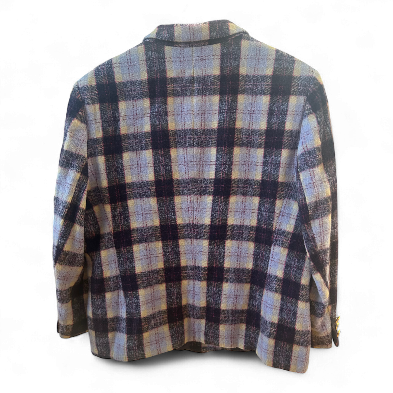 Hucke Blazer Kariert Wolle Mix Gr 44 Violett Gelb Gerade Form Herbst Winter
