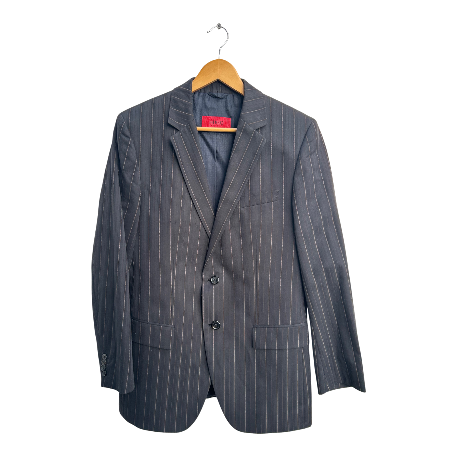 Elegantes Sakko von Hugo Boss in Größe 48 mit feinem Nadelstreifenmuster in Dunkelgrau. Das Modell ADOS/HAGO besticht durch seine hochwertige Verarbeitung und den klassischen Schnitt. Außenmaterial aus 100 % Baumwolle, Futter aus 100 % Viskose – angenehm zu tragen und perfekt für Business, Events oder stilvolle Freizeitlooks. Die Brustweite beträgt 52 cm, die Länge 78 cm, die Ärmellänge 64 cm. Ein edles Basic für Herren mit Anspruch. ✨