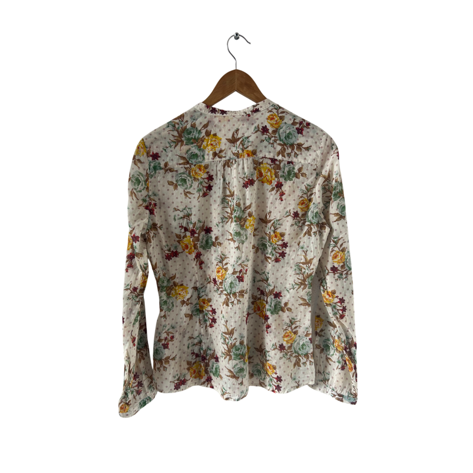 Jake*s Bluse Damen Gr 38 Blumen Langarm Baumwolle Weiß Bunt Romantisch Transparent