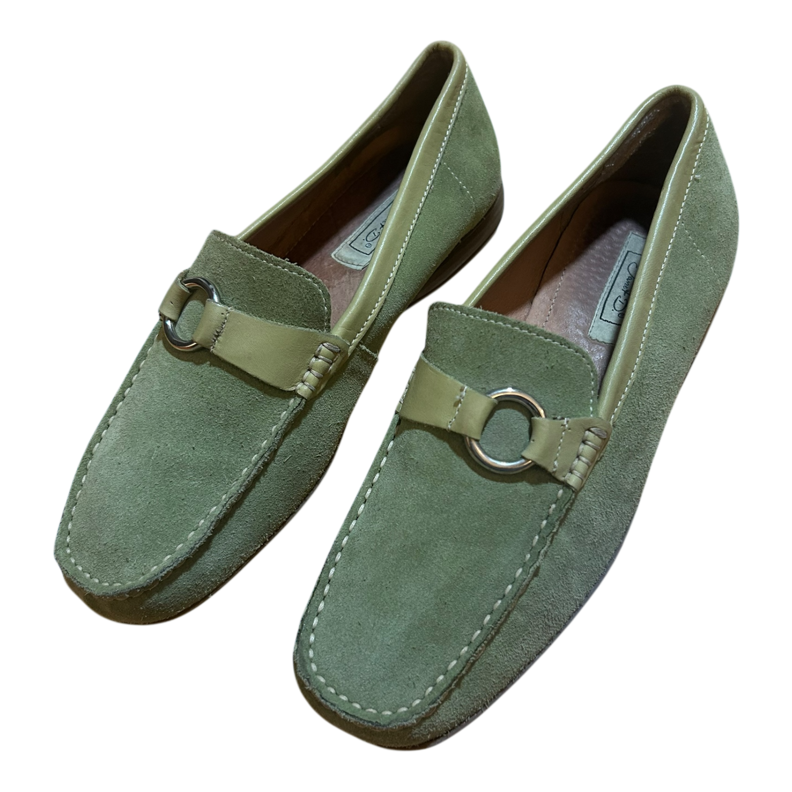 Janet D Damen Halbschuhe Leder Wildleder Grün Gr 39 Komfort Slipper Elegant