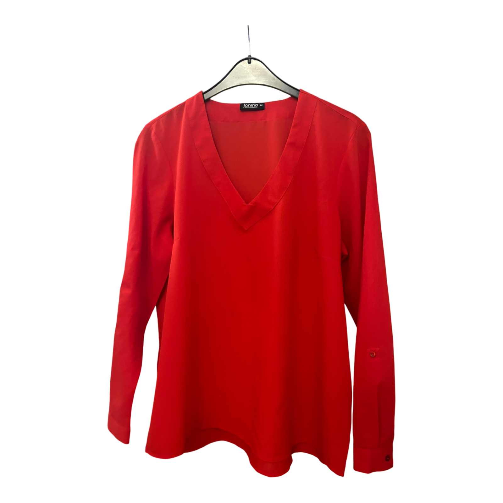 Diese langärmlige Bluse von Janina in Größe 44 ist ein vielseitiges Basic für viele Gelegenheiten 🔴. Der kräftige Rotton setzt ein modisches Statement, während der bequeme Schnitt und der fließende Stoff für angenehmen Tragekomfort sorgen.