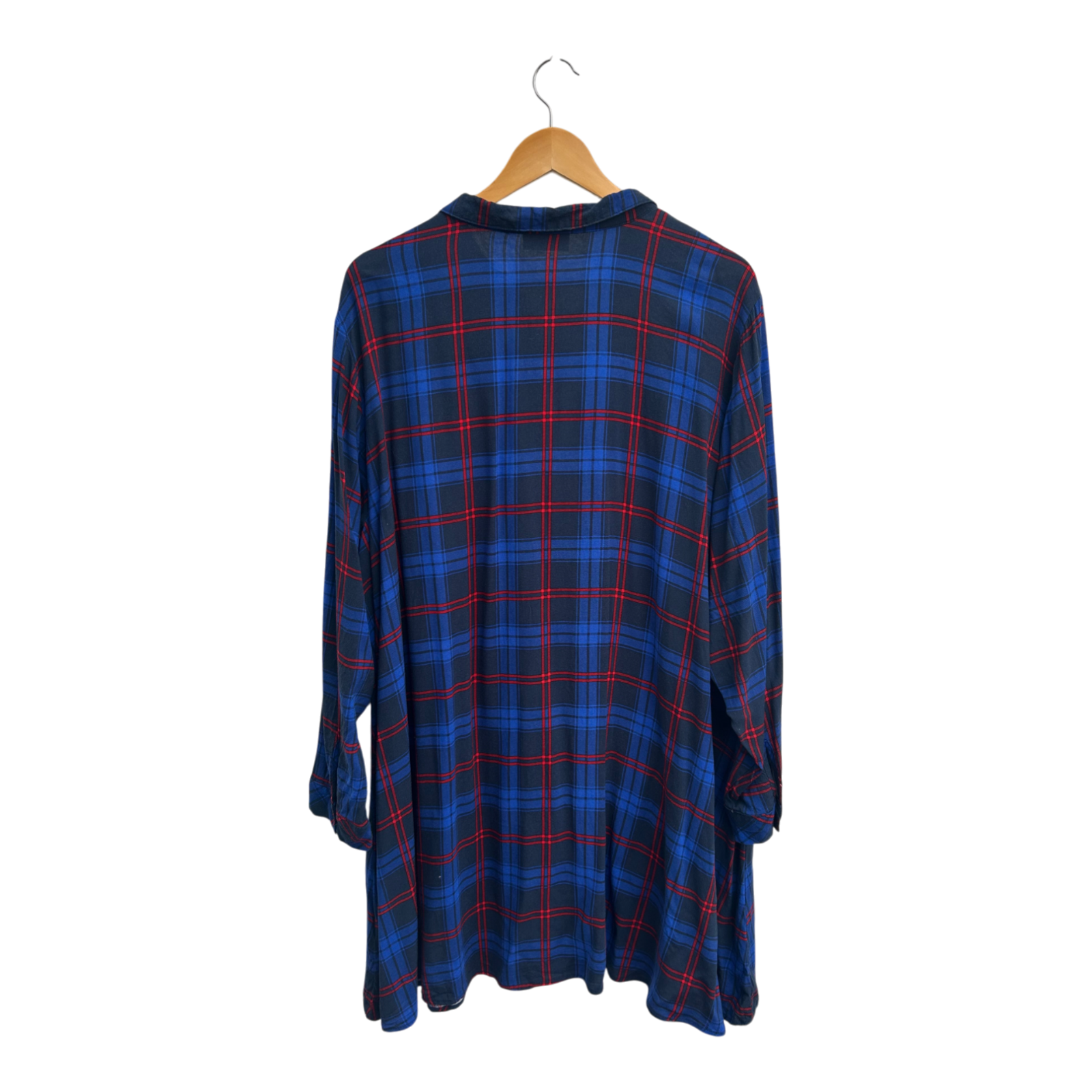 Janina Bluse Damen Longbluse Gr 54 Blau Rot Kariert Viskose Hemdbluse Oversize Casual
