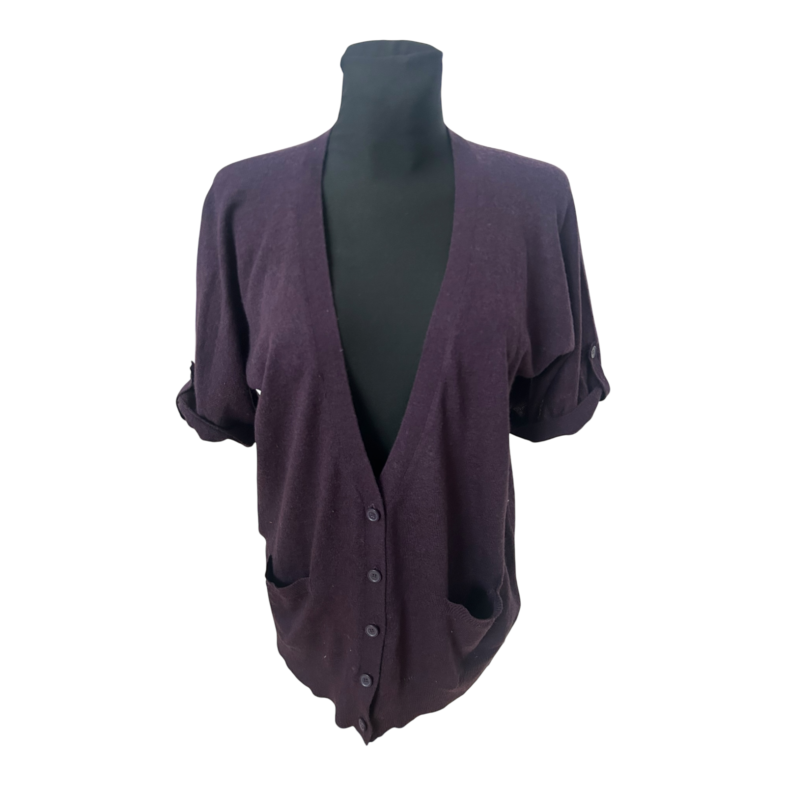Yessica Strickjacke Damen M Dunkelviolett Kurzarm V Ausschnitt Taschen