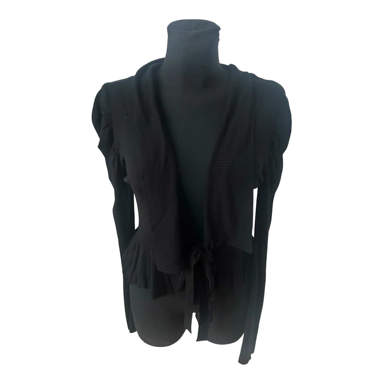 Laetitia Damen Cardigan Gr 40 Schwarz Viskosemix Bindegürtel Puffärmel