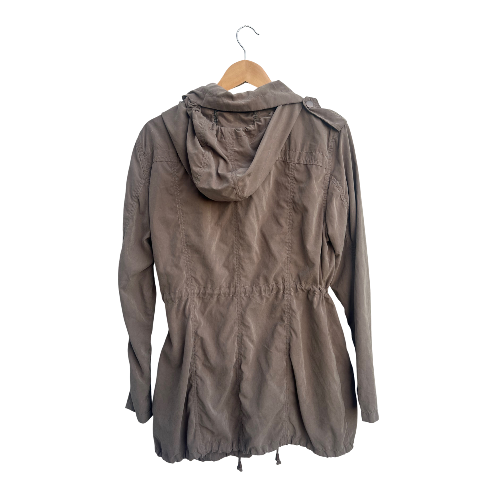 - Besonderheiten: Kapuze, Tunnelzug in Taille und Saum, Reißverschluss, vier Taschen