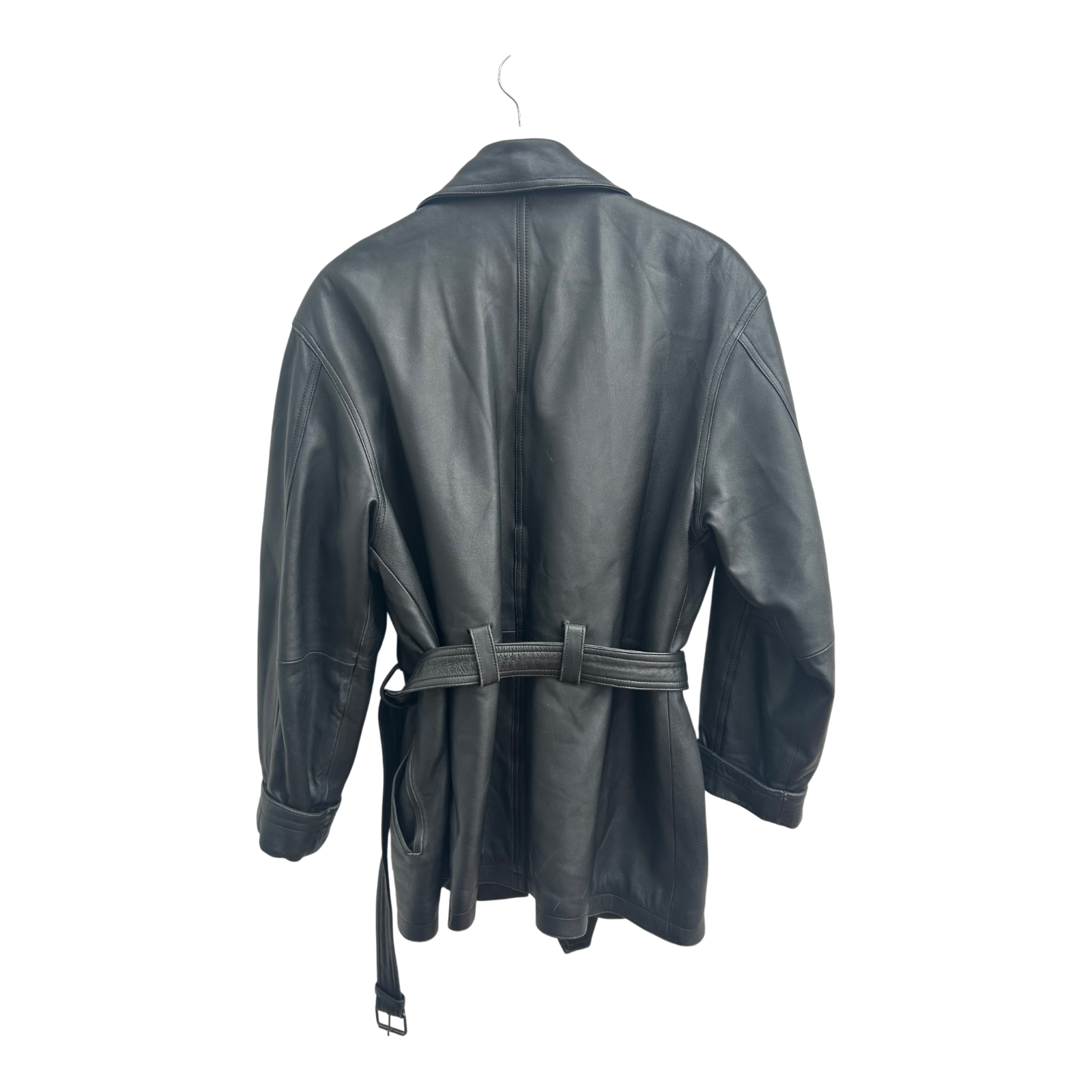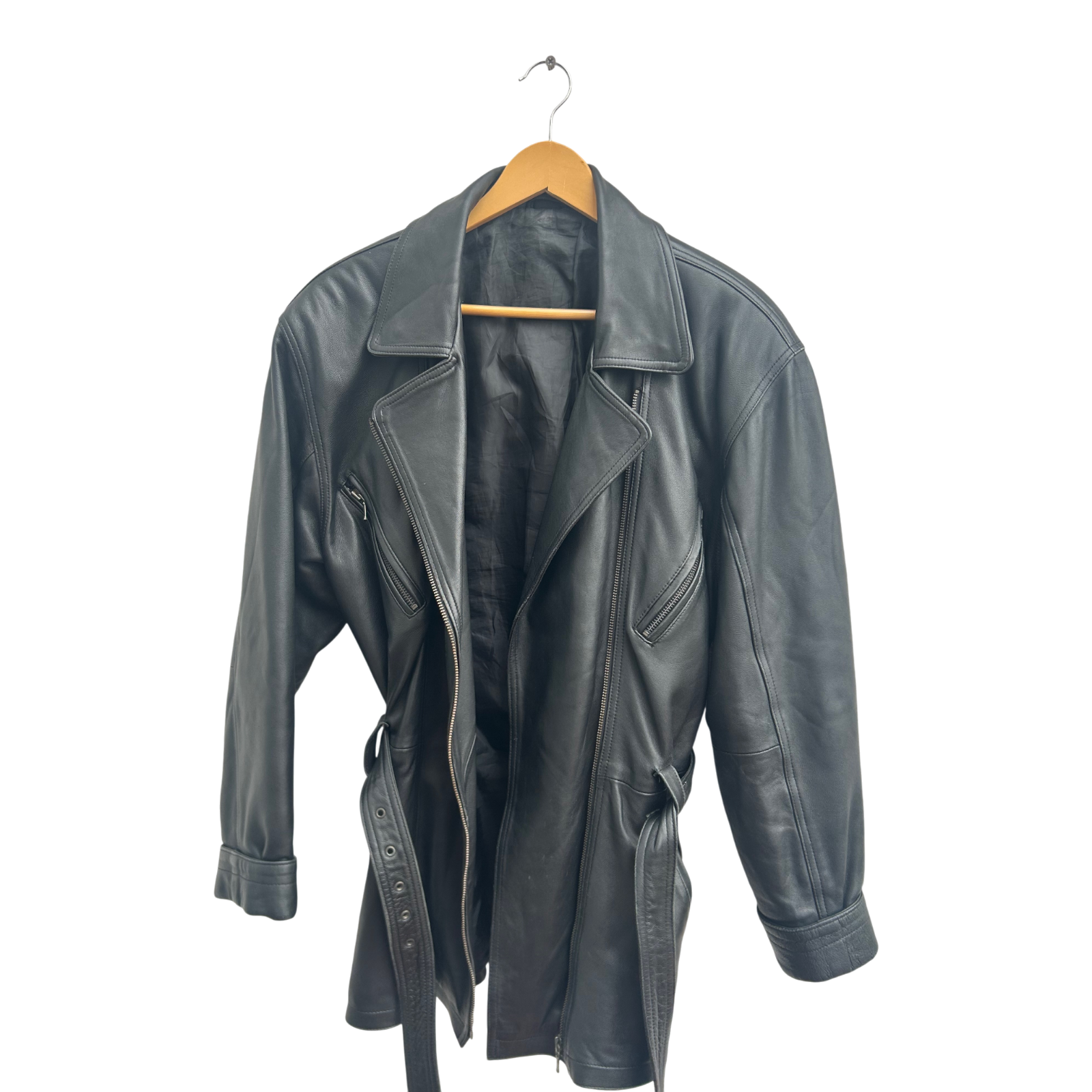 Lederjacke Schwarz Damen Gr 42 C&A Echtleder Bindegürtel Bikerjacke Vintage