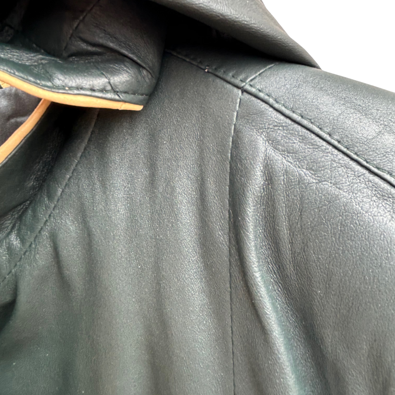 Innen überzeugt der Mantel durch ein edles Futter aus 65 % Viskose und 35 % Polyester, das angenehm auf der Haut liegt. Mit seiner femininen, fließenden Silhouette und den sorgfältigen Verarbeitungsdetails ist er ein echtes Statement-Piece für Liebhaberinnen anspruchsvoller Leder-Mode. Maße: Brustweite 56 cm, Länge 88 cm, Ärmellänge 64 cm. Sehr guter Zustand – das Leder ist weich, gepflegt und nahezu wie neu. 🤎