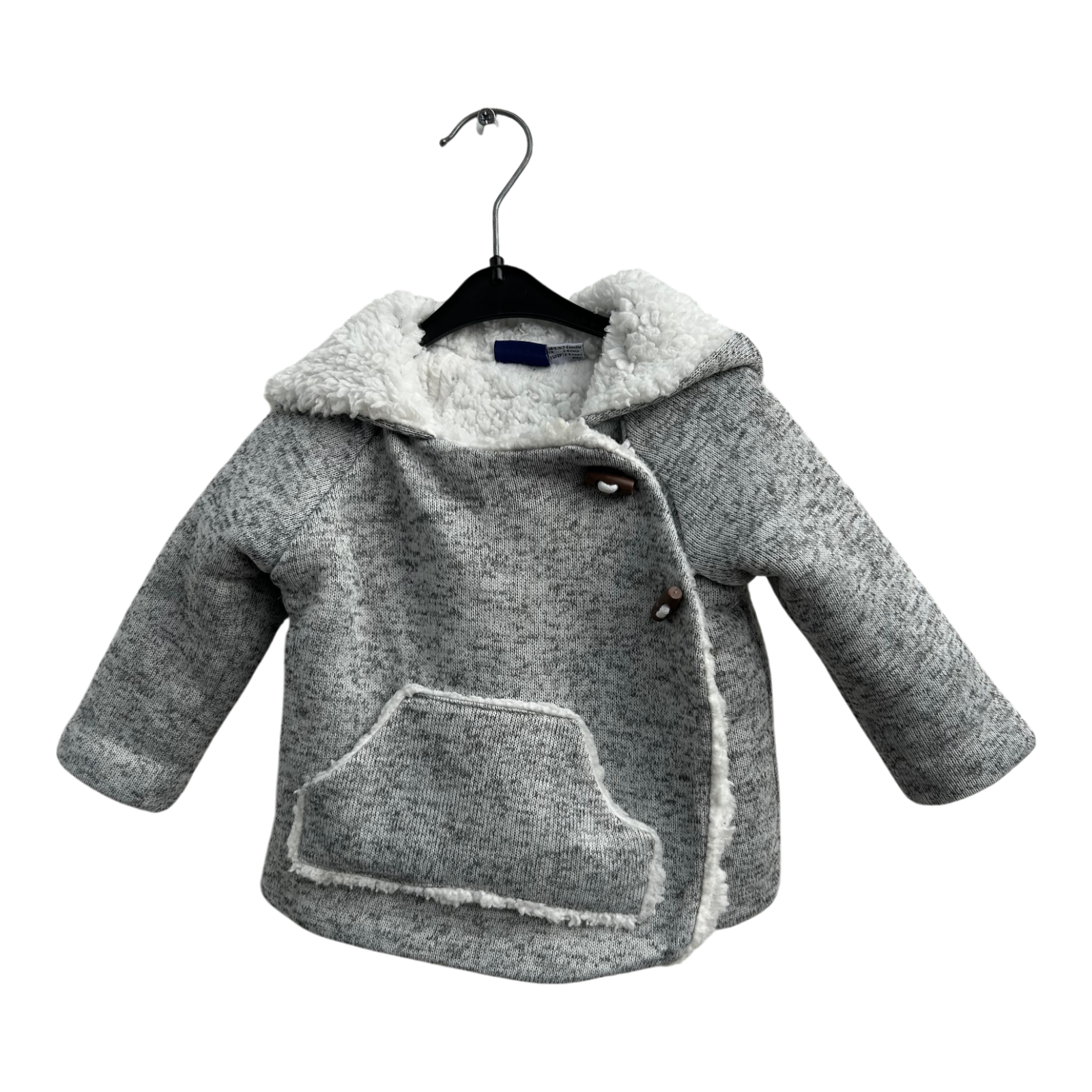 Diese süße Babyjacke von Lupilu in Größe 62–68 ist perfekt für die kalte Jahreszeit. Außen zeigt sie sich in meliertem Grau mit dekorativer Kängurutasche, innen ist sie vollständig mit weichem, kuscheligem Teddyfleece gefüttert – ideal, um dein Baby warm und gemütlich einzupacken.