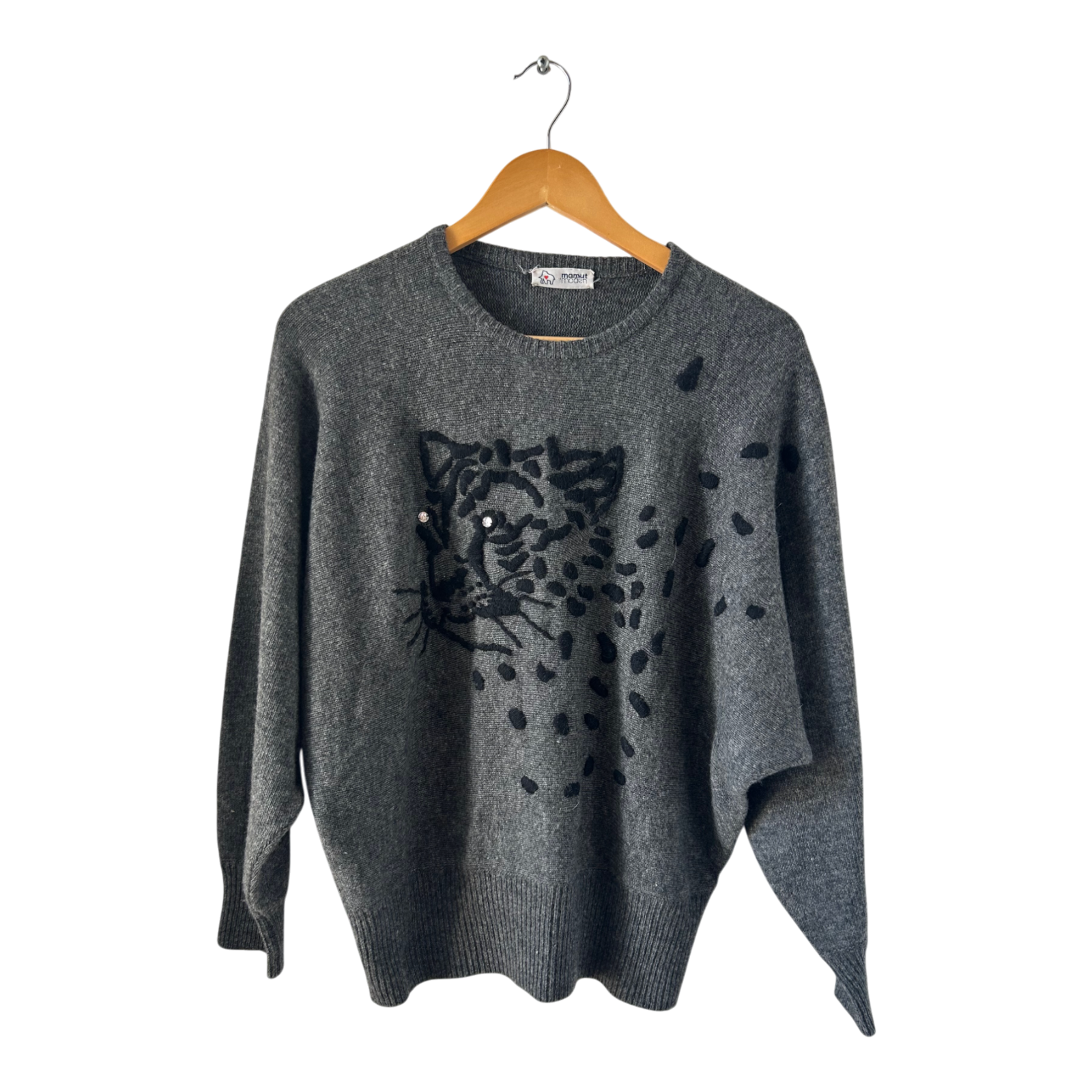 Mamut Moden Pullover Damen Gr L Grau Lammwolle Vintage 80er Oversize Leoparden Motiv