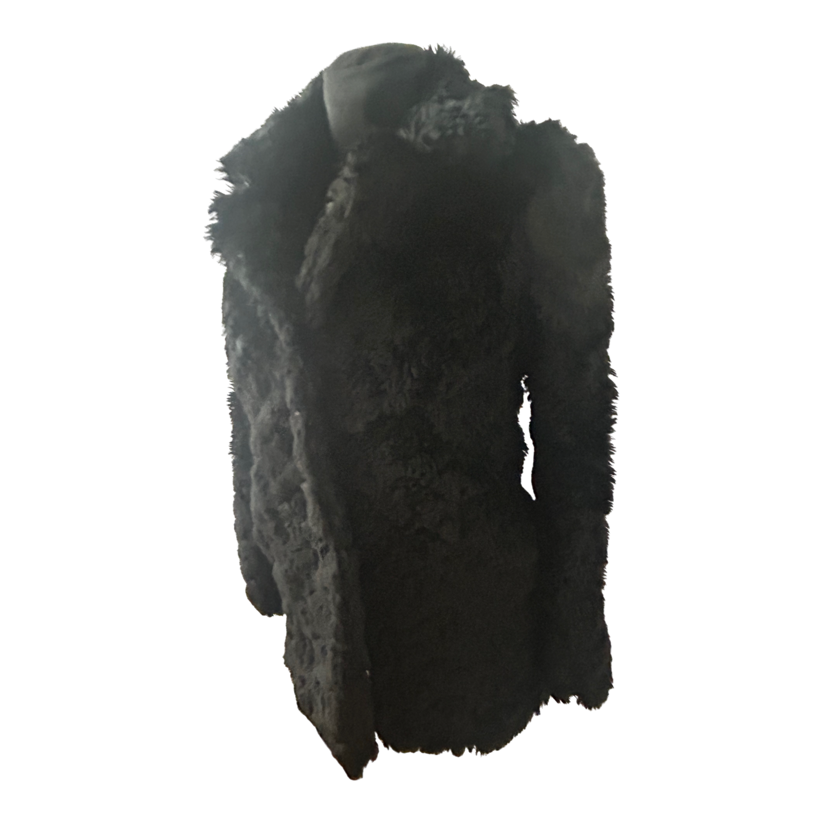 Dieser flauschige Kunstpelzmantel von Mango Suit in Größe XS fühlt sich weich, hochwertig und luxuriös an. Außen präsentiert er sich in tiefem Schwarz mit samtiger Felloptik, während das Material aus 44 % Modal, 41 % Acryl und 15 % Polyester angenehm warm hält. Innen ist der Mantel mit 100 % Acetat gefüttert, was für ein geschmeidiges Tragegefühl sorgt.