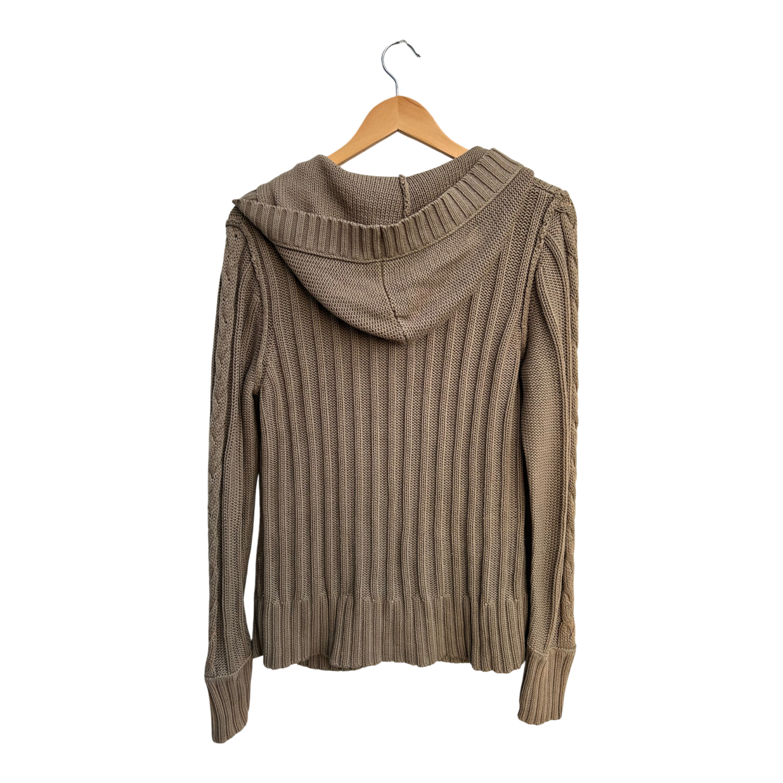 Manguun Strickjacke Damen Gr L Hellbraun Baumwolle Kapuze Zopfmuster Casual