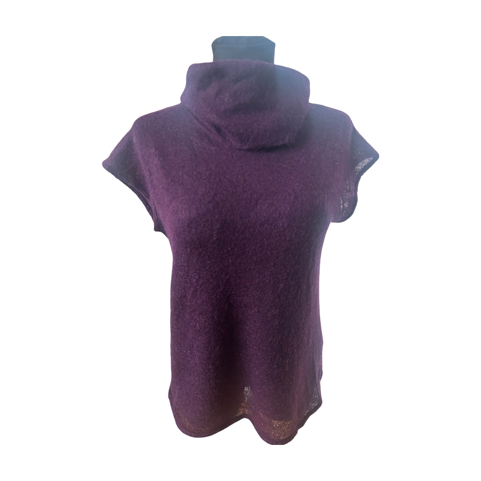 Der weich fallende Rollkragen sorgt für Wärme und einen schönen Sitz, während die kurzen Ärmel dem Pullover eine besondere Note verleihen. Die satte lila Farbe wirkt edel und lässt sich hervorragend kombinieren – sowohl lässig als auch schicker gestylt. ✨🧶