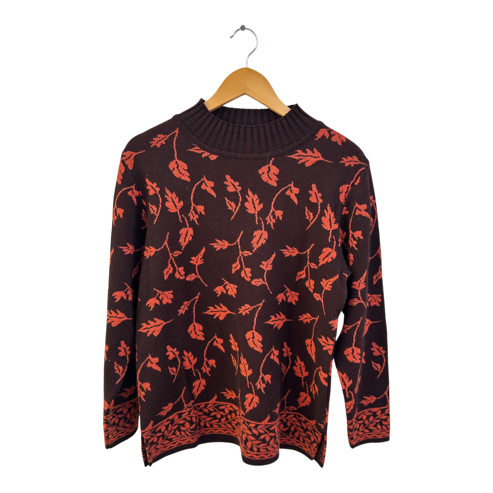 Margarethe Classics Pullover Damen Gr 38 Braun Orange Wollmix Blättermuster Elegant
