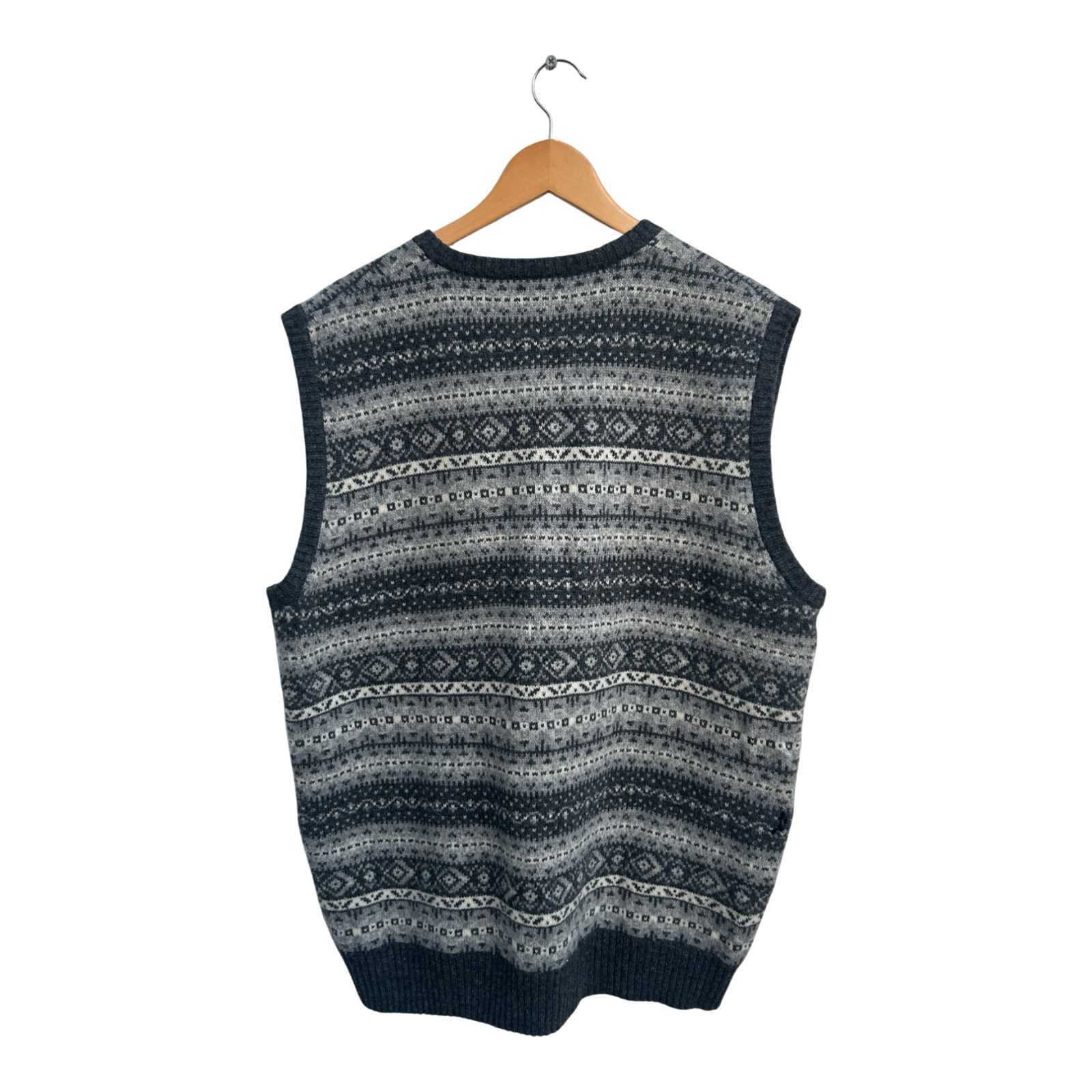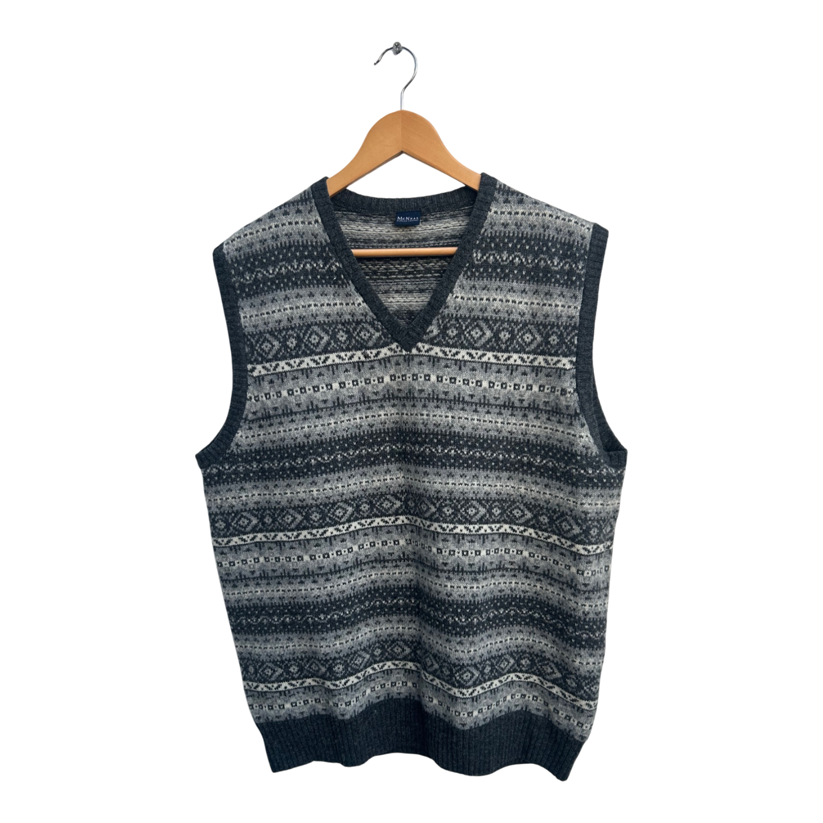 Klassischer Herren-Pullunder von Mc Neal aus reiner, weicher Lammwolle in Grau mit traditionellem Norweger-Muster.