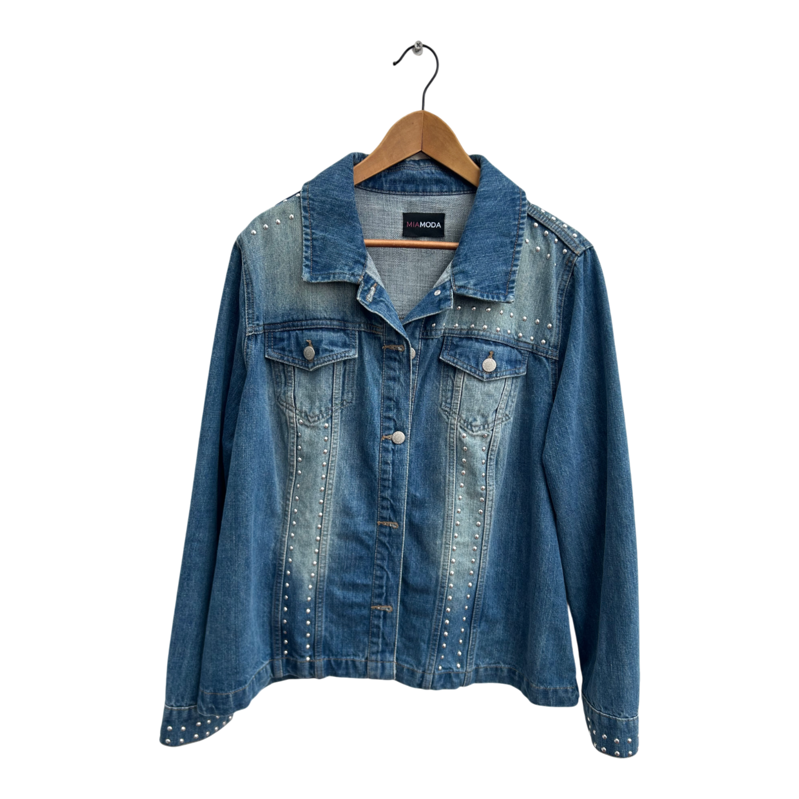 Mia Moda Jeansjacke Damen Gr 50 Blau Nieten Denimjacke Übergangsjacke Casual