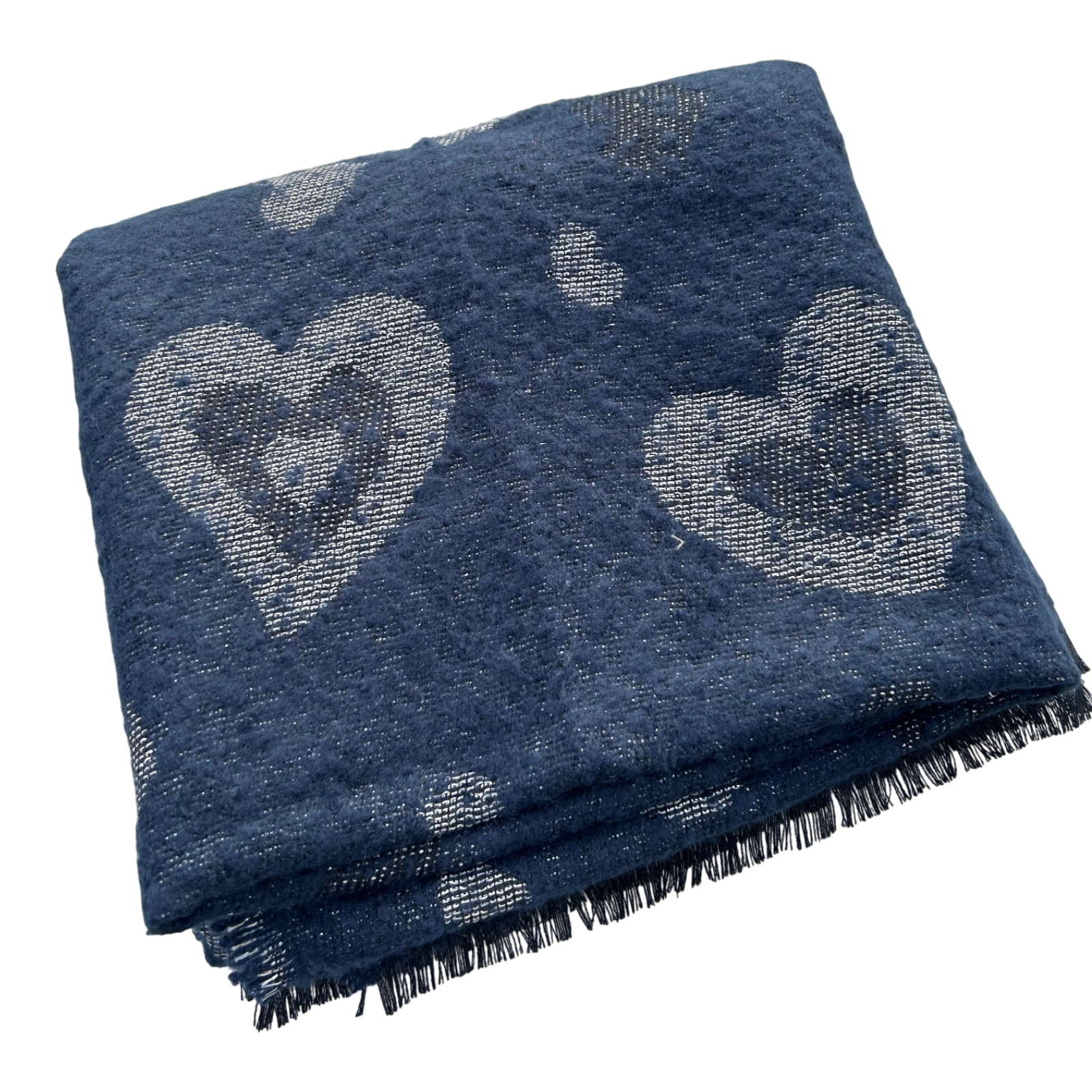 Milano Schal Tuch Blau Herzen weich groß Winter Accessoire Viskose warm kuschelig