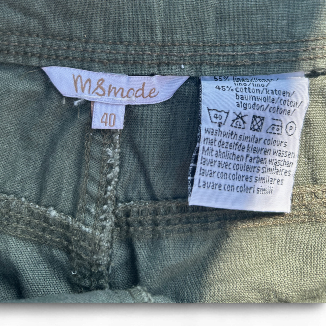 Dieser khakifarbene Rock von MS Mode in Größe 40 überzeugt mit seinem angesagten Utility-Look 🌿. Er ist aus 55 % Leinen und 45 % Baumwolle gefertigt und bietet dadurch ein angenehm luftiges Tragegefühl – perfekt für warme Tage ☀️. Der Rock ist mit mehreren aufgesetzten Taschen, einem seitlich eingesetzten Gürtelband sowie dekorativen Knöpfen versehen 🧵. Mit einer Bundweite von ca. 44 cm und einer Länge von 51 cm bietet er eine bequeme, leicht figurbetonte Passform. Ideal für Alltag und Urlaub! 👜